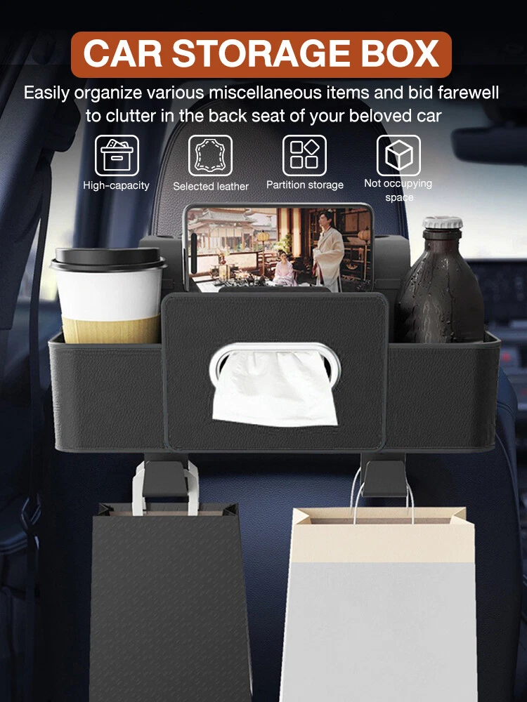 Features: Super storage, convenient upgrade: set of multi-functional storage box and intelligent partition design in one, easy to organize all kinds of sundries, so that the backseat of the car goodbye to clutter, for your travel all-round quality, enjoy a comfortable journey. Easy to install, stable and worry-free: closely fit the back of the seat, with the stabilizing buckle can easily handle the installation, does not take up extra space, but also can be fixed steadily without sliding, convenience pull full. Excellent quality and durability: Selected ABS material with wear-resistant leather is carefully crafted, fearless of frequent daily use, anti-abrasion, anti-color fading, tear-resistant, and still as good as new after years of use. Thoughtful design, easy to use: ad hoc built-in tissue bag storage space, suitable for ordinary tissue storage, while reserving space for cell phones, cups, snacks and other commonly used items, easy to use, always keep the car neat and tidy. Wide range of adaptability, a car must have: whether it is a caravan, truck, car, SUV or convertible, all applicable, sufficient storage space to meet the needs of all types of models to store the essentials, easy to create a well-organized car environment. Specification: Product name: car seat back organizer Material: leather + ABS Features: hooks + storage + tissue box + bracket Installation: direct mounting with clips Product weight: about 340 grams Product size: about 32x5x10cm Package List: 1* Car seat back organizer On Jan 2, 2025 at 20:22:59 PST, seller added the following information: