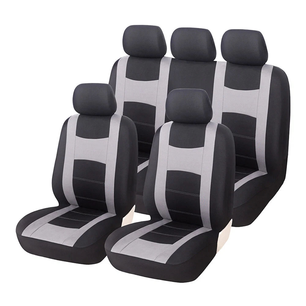 Product Description 9PCS Full Set Car Seat Cover Polyester Fabric Protect Seat Covers Interior Accessories Protector Product Description: Item Type: Interior Accessories & Seat Covers Item Name: Universal Car Seat Covers Suite Number: 9 Pieces Set Compatible Vehicles : Cover Fits all Standard Car Seats Placement on Vehicle: Front and Rear Material :Polyester Color: Black/Gray Packing Included: 5 x Head Rest Covers Size: 32 x 29 cm 2 x Front Seat Cover (bottom size: 52*54cm/ back front: 54*68cm) 2 x Back Seat Cover (bottom size: 65*136cm / back seat cover: 78*136 cm PLEASE NOTE: This is a universal product. Whilst every attempt is made by the manufacturer to cater for all cars we cannot guarantee this will fit every vehicle. This seat cover requires your car’s headrest to be movable. Payment Returns Contact Us Shipping We accept payment by PayPal only ! Payment should be completed within 5 days after buyer places the order,or else an unpaid case will be opened in order to cancel the transaction. If you can not pay in time, please contact us. e-check from PayPal will only be processed once the payment clears. All of the items will be shipped to buyer's EBAY address,please confirm your address on Ebay before you buy.Your order will be usually shipped out the same or next business days once the payment is made and cleared. 30-day Warranty with Exchange for defective, malfunctioned, incorrect or parts-missing items. Please notify us and return the item with all parts and accessories packed and marked "FOR EXCHANGE" within 14 days of receipt. If defective, malfunctioned or parts-missing items are no longer available, a refund may be issued. All returning postage costs will be the responsibility of the buyers under all circumstances. If you encounter any problems about anything, please feel free to contact us and we will do our best to assist you solve the issue. If you are not satisfied in anyway, please feel free to let us know and give us a second chance to correct it before you decide to leave any neutral or negative feedback. Please contact us through eBay link if you have any questions. We will reply you within 24- 48 hours. Please check you spam mail if no response for 48 hours. All items will be checked before packing. All items are new and of high quality. Item will be shipped within 1 business days upon receipt of payment, excluding weekends and public holidays. If to USA,we will ship your order by USPS,it will take about 8-12 working days to you,and you can track it on line. If to other country,we will ship your order by China Post or Singapore Registered Air Mail,it will take about 14-21 working days to you,you aslo can track it on line. Delivery time is about 14-28 business days and it may take up to 8 weeks . Payment We accept payment by PayPal only ! Payment should be completed within 7 days after buyer places the order,or else an unpaid case will be opened in order to cancel the transaction. If you can not pay in time, please contact us. eCHECK from PayPal will only be processed once the payment clears. All of the items will be shipped to buyer's EBAY address,please confirm your address on Ebay before you buy.Your order will be usually shipped out the same or next business days once the payment is made and cleared. Returns 30-day Warranty with Exchange for defective, malfunctioned, incorrect or parts-missing items. Please notify us and return the item with all parts and accessories packed and marked "FOR EXCHANGE" within 14 days of receipt. If defective, malfunctioned or parts-missing items are no longer available, a refund may be issued. All returning postage costs will be the responsibility of the buyers under all circumstances. Contact Us If you encounter any problems about anything, please feel free to contact us and we will do our best to assist you solve the issue. If you are not satisfied in anyway, please feel free to let us know and give us a second chance to correct it before you decide to leave any neutral or negative feedback. Please contact us through eBay link if you have any questions. We will reply you within 24- 48 hours. Please check you spam mail if no response for 48 hours. Shipping All items will be checked before packing. All items are new and of high quality. Item will be shipped within 1 business days upon receipt of payment, excluding weekends and public holidays. If to USA,we will ship your order by USPS,it will take about 7-10 working days to you,and you can track it on line. If to other country,we will ship your order by China Post or Singapore Registered Air Mail,it will take about 14-21 working days to you,you aslo can track it on line. Delivery time is about 14-28 business days and it may take up to 8 weeks . Welcome to our Store ~