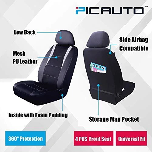 Menu 1. We require immediate payment. 2. We currently accept payment via eBay managed payments only. 3. Once payment is cleared, we will dispatch your shipment within 1-3 business days. Please refer to the "Shipping" tab for more information regarding shipping speed to your destination. Car Seat Covers, Front Seat Only, 3-Layered Mesh with PU Leather, Airbag Compatible, Fits Most Cars, SUVs, Trucks, and Vans, Low Back, Black/Gray (4 PCS) Product description Universal Fit - Low back design fits most cars, trucks, SUVs, and vans, and is suitable for all weather conditions. Front seat only, including 2 front bucket seat covers and 2 separate headrest covers. Protects your vehicle's seats from spills, stains, tears, and other damage. Stripe Design and High Quality - Features black mesh with gray PU leather for a sporty, fashionable look that refreshes your vehicle's interior. Made from three layers of mesh, this highly breathable and stretchable fabric includes 5mm foam padding for added comfort. Side Airbag Compatible - Exquisite workmanship and advanced stitching techniques allow airbags to inflate upon impact, ensuring safety. Car Back Seat Pockets - Adds storage with a map pocket behind the front seat to keep your vehicle interior tidy and organized. Easy to Install - Includes installation instructions in the package. Elastic straps and Velcro combine for fast and simple installation, with no tools needed. PLEASE MESSAGE US IF YOU HAVE ANY OTHER QUESTIONS, AND MANY THANKS FOR READING ALL OF THIS. Copyright ©#. All Rights Reserved.