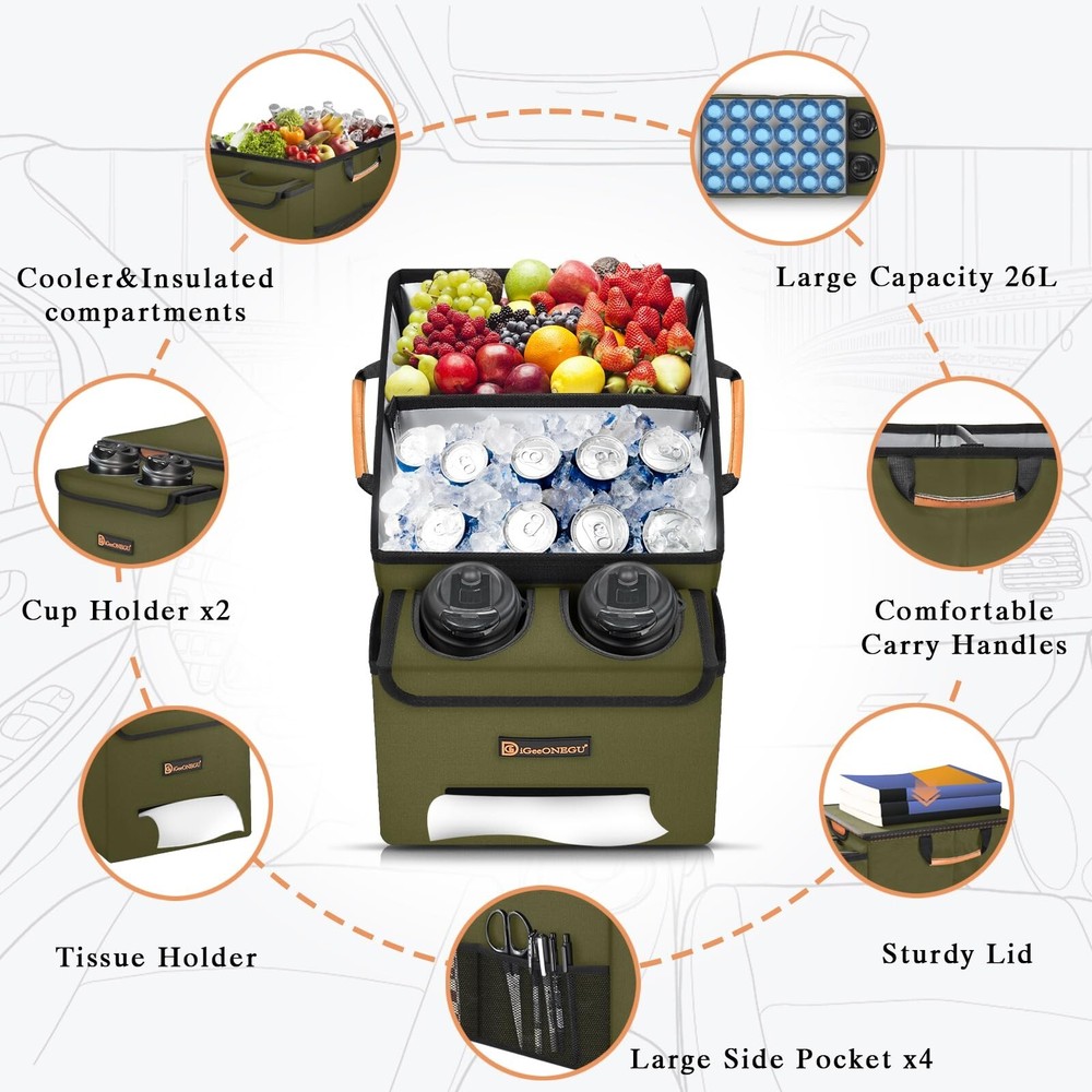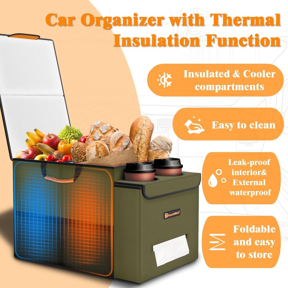 Car Seat Organizer-Car Organizers and Storage with Cooler Compartment, Car Organizer Front Back Seat for Kids, Car Storage Organizer with Lid Cup Holder Tissue Holder for Road Trips (Olive Green) - Buy Now with Fast Shipping! Car Seat Organizer-Car Organizers and Storage with Cooler Compartment, Car Organizer Front Back Seat for Kids, Car Storage Organizer with Lid Cup Holder Tissue Holder for Road Trips (Olive Green) Product Details Specific Uses For Product: Car Organizers and Storage Material: High-quality 900D Oxford cloth, PP boards, Insulating pearl cotton, Scratch-resistant insulation film, High-density fabric See more Special Feature: Insulated, Sturdy, Foldable, Portable, Lightweight, Waterproof, Odourless Color: Olive Green Brand: DiGeeONEGU Product Dimensions: 17"D x 9.8"W x 9.8"H Shape: Rectangular Number of Items: 1 Maximum Weight Recommendation: 15 Kilograms Manufacturer: DiGeeONEGU Specific Uses For Product: Car Organizers and Storage Material: High-quality 900D Oxford cloth, PP boards, Insulating pearl cotton, Scratch-resistant insulation film, High-density fabric Special Feature: Insulated, Sturdy, Foldable, Portable, Lightweight, Waterproof, Odourless Color: Olive Green Brand: DiGeeONEGU Product Dimensions: 17"D x 9.8"W x 9.8"H Shape: Rectangular Number of Items: 1 Maximum Weight Recommendation: 15 Kilograms Manufacturer: DiGeeONEGU Part Number: Car Seat Organizer DGCOBW01-Green Item Weight: 2.6 pounds Country of Origin: China Item model number: DGCOBW01-Green Style: Classic Item Package Quantity: 1 Number Of Pieces: 1 Special Features: Insulated, Sturdy, Foldable, Portable, Lightweight, Waterproof, Odourless Included Components: Car Seat Organizer, Lid, Base Plate, Partition Board Batteries Included?: No Batteries Required?: No Date First Available: September 15, 2023 Key Features ✅ Insulation Capable Organizer: This car seat organizer is equipped with a four-layer insulation system, including high-quality insulation film, thick insulation foam, sturdy boards, and high-density fabric. These designs allow the car organizer to maintain the temperature of drinks and food for a long time. Whether you are on a road trip or having a picnic, you can conveniently carry cold drinks and hot food. ✅ More Storage Space: This car storage organizer has two spacious main compartments, four side net pockets, two built-in cup holders (foldable) and a large tissue box. This means you can easily store snacks, toys, books, games, and any other items you need to carry on your road trip. ✅ Sturdier Structure: The outer layer of the car back seat organizer is made of high-quality 900D Oxford cloth, the middle is composed of sturdy PP boards and insulating pearl cotton, and the inner layer is scratch-resistant insulation film. The bottom and top of the car seat organizer backseat are equipped with boards, ensuring its sturdy and durable, and won't collapse. ✅ Larger Capacity: The size of the front seat organizer is 17*9.8*9.8 inches, which is larger than most similar products on the market. It can be easily placed in the passenger seat, back seat or floor of the vehicle. Its four layers of quality materials ensure that the front seat organizer has good insulation and waterproofing properties. ✅ Portable Handle: The back seat car organizer is equipped with two comfortable handles, making it easy for you to move or carry it. This car back seat organizer is suitable for the front or back seats of various vehicles, such as cars, trucks, vans, and SUVs. Whether it's for car travel, car storage, home storage, or family picnics, it can be widely used. Product Description