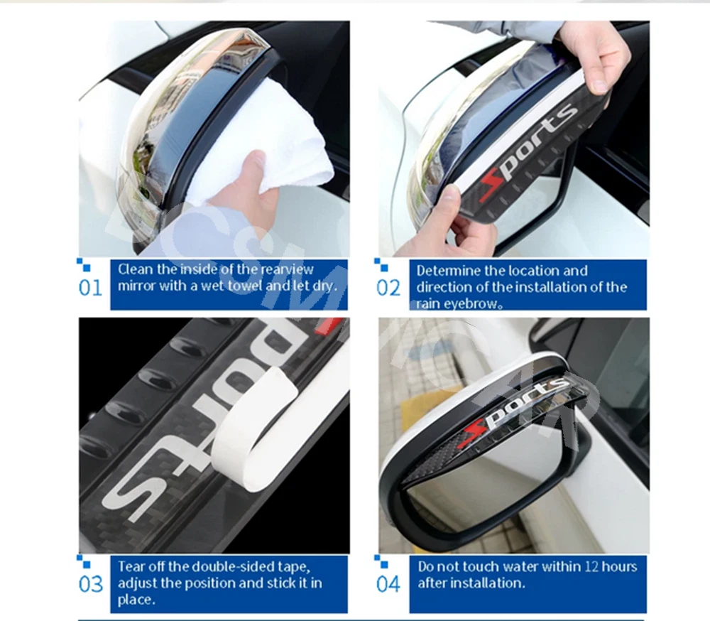 Home Payment Return Policy About us Contact us BCSMMCAR Car Side Rearview Mirror Carbon Fiber Rain Eyebrow Visor Snow Sunscreen 2PCS Product Overview Details Car Side Rearview Mirror Carbon Fiber Rain Eyebrow Visor Snow Sunscreen Weather Protection Cover 2PCS Description: 1. Help prevent rain, so that you have a clearer rear view and safer driving experience; 2. In sunny weather, it can reduce the dust attached to the mirror. 3. There is tape on the back, which is easy to install on both sides of the car side rear view mirrors. 4. Flexible and foldable, fits Most models. Specs: Material: soft PVC Color: Black (Carbon Fiber Look) Product size: 1800 x 48mm Quantity: 2 pieces Applicable models: cars, SUVs and other small general-purpose cars. Installation method: 1. Clean the inside line of the side mirror and keep it dry. 2. Remove the back glue and adjust the position to paste and fix. 3. Press with towel or hand; 4. Complete installation. Package Included: 2pcs Car Mirror Carbon Fiber Rain Eyebrow Shipping Policy Payment Method Returns Policy Shipping Policy All items will be checked before packing. All items are new and of high quality. Item will be shipped within 1 business days upon receipt of payment, excluding weekends and public holidays. If to USA,we will ship your order by USPS or UPS,it will take about 2-6 working days to you,and you can track it on line. Payment Method We accept payment by PayPal only ! Payment should be completed within 5 days after buyer places the order,or else an unpaid case will be opened in order to cancel the transaction. If you can not pay in time, please contact us. e-check from PayPal will only be processed once the payment clears. All of the items will be shipped to buyer's EBAY address,please confirm your address on Ebay before you buy.Your order will be usually shipped out the same or next business days once the payment is made and cleared Returns Policy 30-day Warranty with Exchange for defective, malfunctioned, incorrect or parts-missing items. Please notify us and return the item with all parts and accessories packed and marked "FOR EXCHANGE" within 14 days of receipt. If defective, malfunctioned or parts-missing items are no longer available, a refund may be issued. All returning postage costs will be the responsibility of the buyers under all circumstances. Store Categories Store Categories Other Home Payment Shopping About Us Contact Us