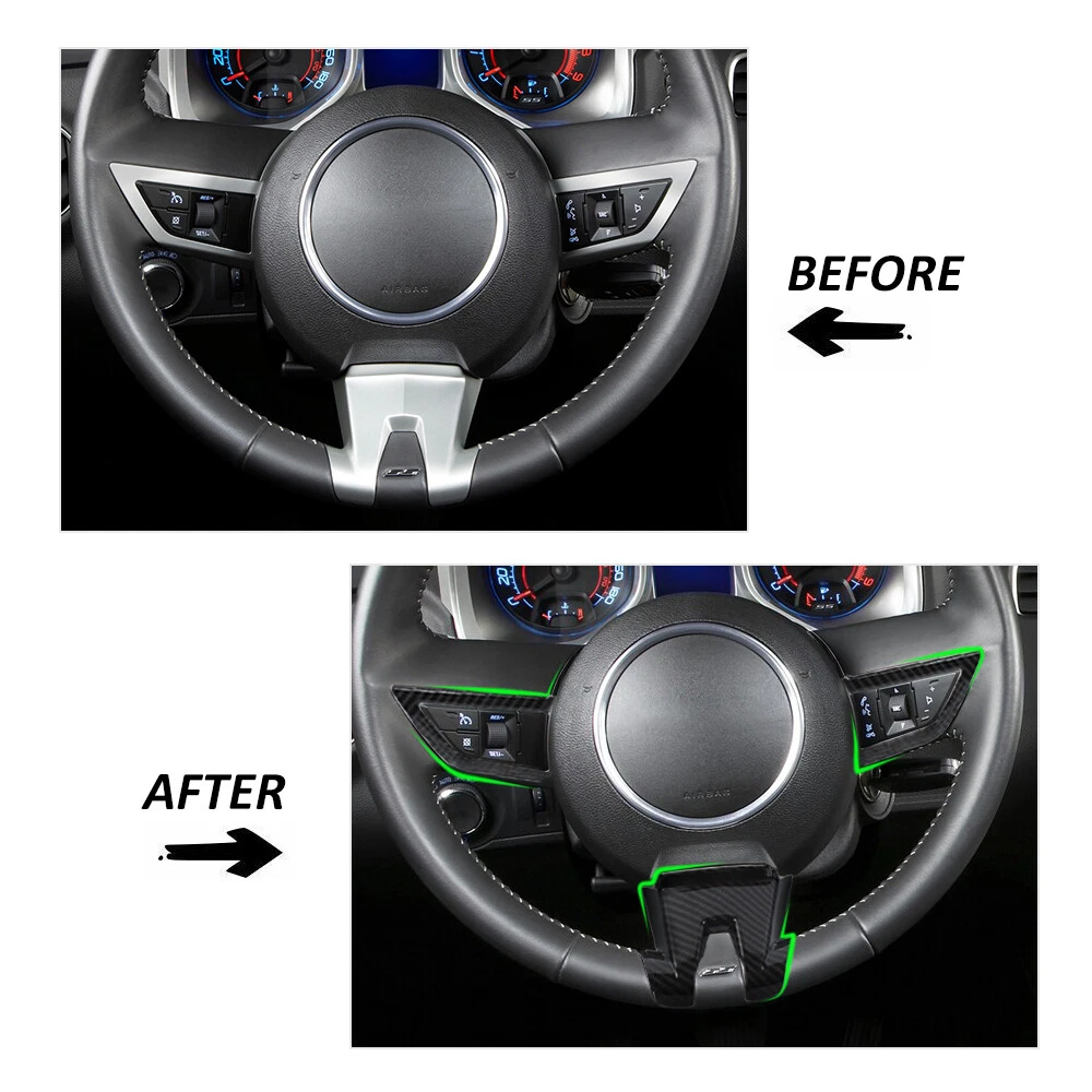 "❈Free Returns&Fast Shipping❈3Ys Warranty❈Lowest price❈ Condition:100% Brand new Factory-Quality, Made in an ISO9001 Factory Easy installation,Decorate your car charming luxury vivid" Carbon fiber Steering Wheel Molding Cover Trim Decor For Chevy Camaro 2010-2011 Notice: Please make sure your model is suitable Due to light and screen differences, the item's color may be slightly different from the pictures. If have any questions please contact us, thanks! Description: Fit for: For Chevrolet Camaro 2010-2011 Color: Carbon Fiber Material: High-Quality ABS Package Includes: 3pcs 100% Brand New with High Quality Provide a high class and fashional style for your car Installation and introduction: DIY item --- Easy to install. Pls use alcohol or an agent to clean the position of the installation (to make sure it is without grease. Wax or dust etc.) Pls ensure the position of installation can be completely fit the case before installation, (Note: if there any questions or misfits, please contact us) Rive the strong double-sided adhesive of the back, if meet the case of a relatively low temperature, please heat it via the hair dryer or lighter. According to the comparison stick up it and press about 1-2 minutes (Note: do not wash your car in 24 hours, the adhesive should be fixed after 12 hours ) The installation has been completed. Payment Return Shipping About Us FAQ Payment Payment Information Immediate payment is required upon selecting "Buy It Now" or upon checking out through the basket. We only accept payment via PayPal. When making a payment to us via PayPal, you can use your existing PayPal account. No financial information, passwords, credit card numbers or personal information other than your name, email address and shipping address is received by us. Although PayPal is extremely secure, Jecar is not responsible for protecting the personal information you share with them. You are encouraged to read the related PayPal policies carefully. Promotional:Please note that website discounts, coupons, and gift cards are not valid for use on eBay. Return -We hope that you will be pleased with your order. However, in the event that your order is not suitable, we are happy to accept returns for a refund (excluding postage) or an exchange with 30 days of purchase. -It is very important that you include a note with your eBay ID, name, reason for returning and return requirements. -In the event of a return, the customer is responsible for postage costs. It is highly unlikely that a product may be faulty, however in the case returning postage will be refunded on arrival. Exchange and Refund Process Returns are handled on a daily basis therefore your exchange or refund will be posted on the day that your return arrives; you will also receive an email to confirm this. Exchanges will be posted to the address associated with the original order (unless otherwise stated) and refunds will be issued to the original payment method only. PLEASE NOTE: All products that have been used or original packaging is incomplete will be charged 25% restock free Shipping Delivery Information: All orders are dispatched within 1~3 working day upon receipt of payment. This is an insured and tracked service with a transit time of 1-5 working days depending on postal service selected. Delivery times may vary, especially during peak periods. We currently ship to the United States. About Us Welcome! Welcome to TESIN, one of the fastest-growing online retailers of automotive parts and accessories today! We're proud to offer all of the leading brands in performance gear, interior accessories, and style upgrades, at prices suitable for any budget. Most importantly, we back every one of our products with the best one-on-one customer service you'll find anywhere. Customer Service Forget about those faceless online stores that hide behind hard-to-find contact info and robotic phone menus. At TESIN, serving our customers is priority number one. That's why, when you give us a call or chat with us online, you'll be communicating with a real person right here in Illinois. Whether you have questions about a particular product, want to place an order, or need to return an item, our experienced sales and service staff is ready to take your call. After all, YOU the customer are the most important part of our business! Don't just take our word for it, either. TESIN is proud to be a Better Business Bureau-accredited business with an A+ rating, a Google Trusted Store, and a Bizrate Customer Certified Store. With these kinds of credentials, we're a company you can count on. Customer Reviews If you want the most real, road-tested info about one of our products, don't take it from us - let your fellow auto enthusiasts share their experiences with our Customer Reviews. All of our Customer Reviews are written by real Jecar customers who have used our products and want to share their opinions. From fit and finish to performance and durability, our Customer Reviews will help you decide on the perfect parts for your vehicle. FAQ Frequently Asked Questions Q: How do I order? A: You can place your order online at any time using eBay secure shopping cart. Q: How do I pay for my order? A: We accept Visa, Mastercard, Discover, American Express, PayPal. Q: How will my order be shipped? A: We offer Ground Shipping for US orders ONLY (including Alaska and Hawaii). Q: What are your shipping and handling rates? A: Shipping and handling rates vary by product. Almost all of our items shipped within the continental U.S. come with Free Shipping, however, due to weight and occasional handling fees some of our products have a shipping charge. All shipping fees will be displayed on individual items before you add them to your shopping cart and purchase them. For orders being shipped outside the continental U.S. we will add an extra shipping charge to the entire order. This charge will be displayed on the order confirmation page before you submit your order. Q: H