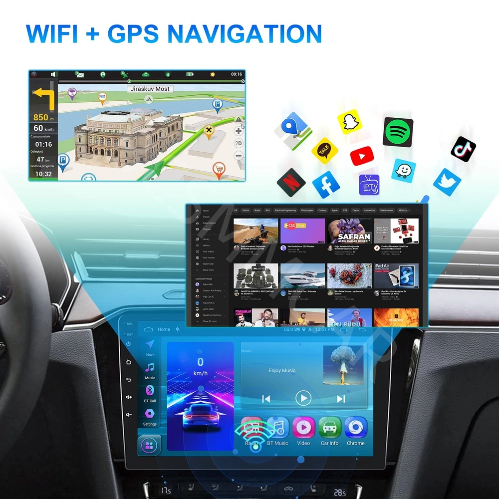 Product View Detail With 8LED Camera Android 13 Car Radio For CarPlay Android Auto 10in Double 2 Din Multimedia Player Radio GPS Navigation WIFI BT FM 2G 64G Note:Not is universal , Please check with your car panel's size !!! Features: ● HD 10'' 2.5D Tempered Glass Mirror auto radio player ● Wireless Carplay : You can choose wired connection or wireless connection to carplay, connect to Apple mobile phone, access mobile phone address book, mail, notification, map navigation, music, video and other information, and realize voice control. ● Wired Android auto : The wired Android auto car system can closely integrate the user's Android phone and player, and realize navigation, make calls, send and receive information, listen to music and other operations through data cable connection. ● Built-in GPS Navigation: Users can purchase directly from play store for offline navigation. With wifi connected, Google Maps can be used perfectly, you can go anywhere you want and never get lost again. ● High definition 1080P: Full capacitance touch screen for easy operation, well designed user interface for car only ● Built-in WIFI: Connect to WIFI, and you will find a new world,the most convenient one is the online map. ● Rear camera: support AHD high-definition 720P camera image input,you can switch between CVBS and AHD simply by choosing in the settings(included 8LED Camera) ● Hi-Fi function: High fidelity, reproduced sound highly similar to your original sound ● Steering wheel control: Through it you can control the functions you need by steering wheel, more convenient ● Built-in Bluetooth with A2DP/Hands Free/Phone book:Bluetooth hands-free calls,Bluetooth music player,Auto loading phonebooks ● Driving recorder: You can choose a recorder, and the car has playback, the evidence can be retained(requires optional) ● Double USB adapter input ● Support file manager: Support download, install and delete over thousands of android apps ● Support multilanguage: Support languages, up to 40 national languages ● You can enjoy music from you mobilephone without any cables, and also support USB connetion. ● FM Radio: Online music you can transfer the music to the car stereo by FM to enjoy the original car stereo sound,with 18 preset stations ● Time Setting:You can use the network or GPS to open the date and time automatically, or you can adjust it manually. ● Support external microphone Specifications: System:Android 13 Chipset:8227L Screen size: 10'' Memory:2GB (RAM)+64GB (ROM) Screen resolution:1024*600 Radio chip:MTK Power output:4*45W Work temperature:-20℃-75℃ Steering wheel control function:Support Power amplifier chip:TDA7388 Radio Band:FM/RDS Video output:Support Reversing input: AHD/CVBS External microphone: support Split screen: support Maps:Built-in offline maps(requires internet to download data) WIFI:Support USB:Double USB interface Audio format:APE/FLAC/WAV/MP3/WMA etc Video format:MKV/RMVB/AVI/MP4/MDV etc Picture format:PNG/JPEG/JPG/GIF/WBMP/BNP etc Factory setting keyword:1234 Language:Chinese/English/French/Italian/Korean/Japanese/Arabic/Spanish/Portuguese/Russian/Turkish/Vietnamese/Hebrew/Polish/German Package Included: 1 x Car MP5 Player 1 x Power Cable 1 x GPS Antenna 1 x Rear Camera lnput Cable 1 x RCA Cable 2 x USB Cable 2 x Mounting Bracket 4 x Screw 1 x Instruction manual 1 x 8LED Rear Camera Shipping Policy Payment Method Returns Policy Shipping Policy Payment Method Returns Policy Copyright © 2017 DataCaciques Home Payment Shipping About us Contact us BCSMMCAR Store Categories Store Categories Other Product View Detail With 8LED Camera Android 13 Car Radio For CarPlay Android Auto 10in Double 2 Din Multimedia Player Radio GPS Navigation WIFI BT FM 2G 64G Note:Not is universal , Please check with your car panel's size !!! Features: ● HD 10'' 2.5D Tempered Glass Mirror auto radio player ● Wireless Carplay : You can choose wired connection or wireless connection to carplay, connect to Apple mobile phone, access mobile phone address book, mail, notification, map navigation, music, video and other information, and realize voice control. ● Wired Android auto : The wired Android auto car system can closely integrate the user's Android phone and player, and realize navigation, make calls, send and receive information, listen to music and other operations through data cable connection. ● Built-in GPS Navigation: Users can purchase directly from play store for offline navigation. With wifi connected, Google Maps can be used perfectly, you can go anywhere you want and never get lost again. ● High definition 1080P: Full capacitance touch screen for easy operation, well designed user interface for car only ● Built-in WIFI: Connect to WIFI, and you will find a new world,the most convenient one is the online map. ● Rear camera: support AHD high-definition 720P camera image input,you can switch between CVBS and AHD simply by choosing in the settings(included 8LED Camera) ● Hi-Fi function: High fidelity, reproduced sound highly similar to your original sound ● Steering wheel control: Through it you can control the functions you need by steering wheel, more convenient ● Built-in Bluetooth with A2DP/Hands Free/Phone book:Bluetooth hands-free calls,Bluetooth music player,Auto loading phonebooks ● Driving recorder: You can choose a recorder, and the car has playback, the evidence can be retained(requires optional) ● Double USB adapter input ● Support file manager: Support download, install and delete over thousands of android apps ● Support multilanguage: Support languages, up to 40 national languages ● You can enjoy music from you mobilephone without any cables, and also support USB connetion. ● FM Radio: Online music you can transfer the music to the car stereo by FM to enjoy the original car stereo sound,with 18 preset stations ● Time Setting:You can use the network or GPS to open the date and time automatically, or you can adjust it