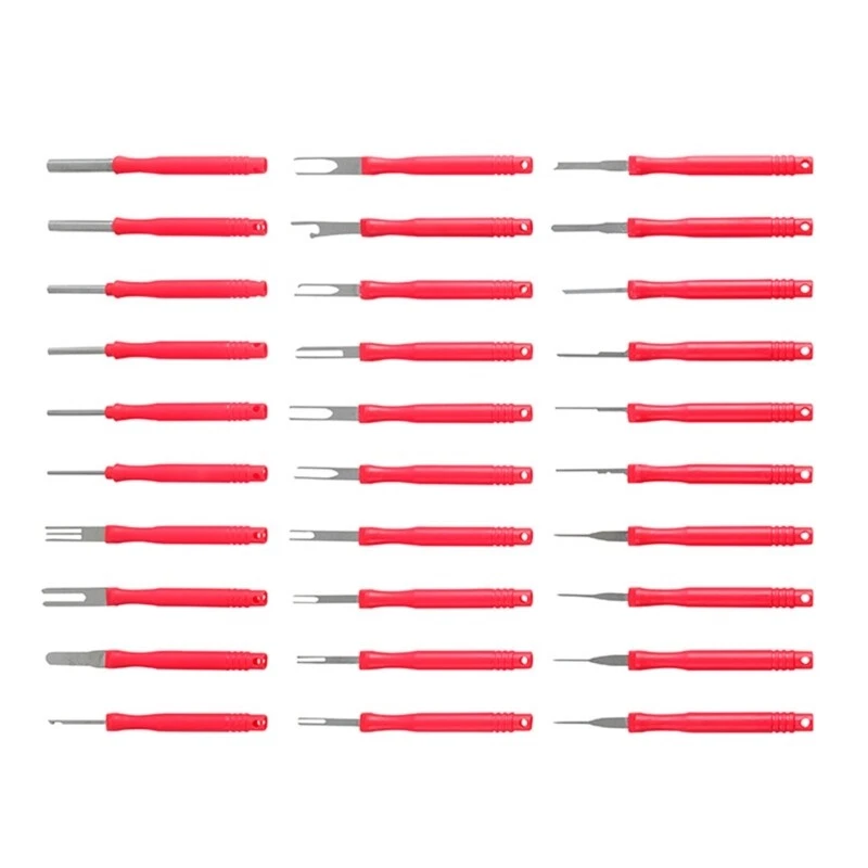 Features: This electrical pin removal tool have strong and thickened metal pointed end, wear resistant and wear resistant, not easy to break, which can provide a better user experience. Metal and plastic materials ensure durability and a comfortable grip for stable operation. Suitable for repair technicians, enthusiasts, and DIY lovers, this set is perfect for various projects. Whether you're working on maintenance, modifications, and circuit troubleshooting, this set is practical and convenient. Improve efficiency with this tool set that simplifies pin removal and improves project work. Specifications: Material:ABS Quantity:6,8,18,30,36 (optional) Package Includes: 1Set Terminal Removal Tool note: Please allow 1mm errors due to manual measurement. Due to the differences between different monitors, the picture may not reflect the actual color.