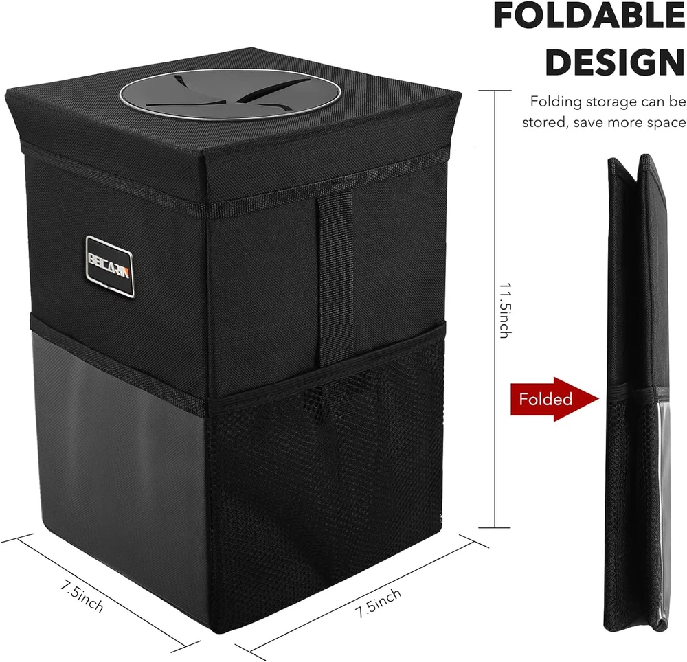 Car Trash Can with Lid - Bag Hanging Storage Pockets Leak-Proof Organizer Collap