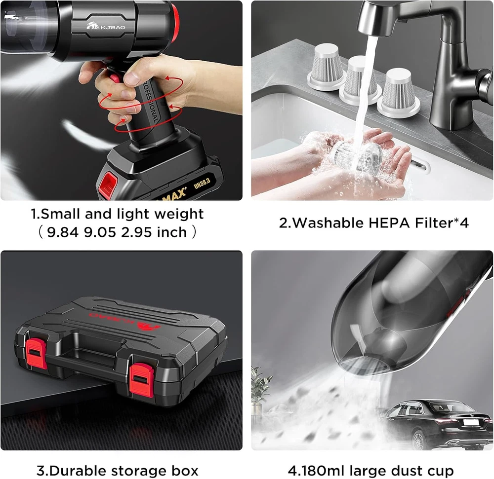 Store New Arrivals Add to Favorite View Feedback Contact Car Vacuum Cleaner, Cordless 4 in 1 21000PA Portable Car Vacuum &260000RPM Air Duster with 12500Mah Removable Battery Description Item model number KV5 Style 21000Pa Capacity 180 Milliliters Number of Items 1 Country of Origin China Surface Recommendation Carpet Power Source Battery Powered Filter Type HEPA Filter Controller Type Push Button Voltage 20 Volts Item Weight 1.44 Pounds Maximum Suction 18000 Picometer Product Dimensions 9.84"L x 2.95"W x 9.1"H Model Name KV5 Form Factor Handheld Control Method Touch Number of Handles 1 Item Weight 1.44 pounds Charging Time 3 Hours Battery Description Lithium-Ion Runtime 50 minutes Special Feature Cordless Amperage 10 Amps Portable Yes Battery type Lithium-Ion Color Black(brushless Motor) Wattage 200 watts Is Cordless? Yes Batteries required No Batteries 1 Lithium Ion batteries required. Recommended Uses For Product Car, Carpet Included Components Accessory Kit Multifunction Car vacuum cleaner has two modes of blowing and suction, Can be used as a small vacuum cleaner and dust blower Upgraded model Based on market feedback, we have upgraded the product, using a brushless motor and an external large mAh battery. The suction power, blowing power, and battery life have all been greatly improved Specific Parameters】Cordless car vacuum cleaner has a built-in 12500mAH battery, a suction power of up to 21000PA and a blowing power of 260000RPM. Its performance is far ahead Scope of use Car vacuum:Car vacuum cleaner allows you to clean pet hair, crumbs, dust, and sand hidden in car seat or sofa.Compressed air:Electric air blower can cleaning computer keyboard, laptop, camera, cleaning car, seat and blinds etc After-sales If you have any missing accessories or product quality issues, please in time Product Description ABOUT US We offer the best prices around on high quality products. Our E-store includes media such as books, movies, music and games while offering electronics, toys, sporting apparel, clothing, tools, general home, garden items and more. SHIPPING We are always working hard to ensure your package arrives as soon as possible. Please understand that some factors like weather, high postal traffic, and the performance of shipping companies are outside of our control. We offer free shipping to the lower 48 states and ship within 2 business days of payment, usually sooner. We do not accept P.O. Boxes. Please provide a physical address. For shipping outside of the continental USA, we only use eBay's Global Shipping Program.The item is shipped to KY and then sent to the rest of the world. International customers are responsible for all duties and taxes. Continue to check out in order to calculate costs for shipping the item to your country. Messages regarding eBay's Global Shipping Program MUST be directed at eBay EXCLUSIVELY. RETURNS We offer a 30-Day Return Policy on items which you are not completely satisfied with. You have the option for a full-refund or an exchange of the item. No returns are available on items shipped outside of the USA. PAYMENT We accept PayPal. CONTACT US This page content is yet to come Please ad us to your favorite seller and visit again later Thank You CUSTOMER SATISFACTION We try our very best to make sure every customer is completely satisfied. If there's a problem, message us! We're happy to help. WE ACCEPT Copyright © 2021 AutoDS. | All Rights Reserved