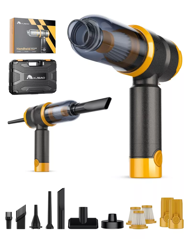 NOTICE: Fully charge the battery before using this car vacuum cleaner. 【Two Removable & Rechargeable Batteries】KV6 car vacuum cleaner equipped with two removable&rechargeable(3 hours Type-c charge) 4000mAh batteries,single battery provide 15 minutes runtime in 15kPa suction mode(Two Batteries-30 mins runtime),the two batteries can be used alternately 【Upgraded Brushless Motor】 The high power portable car vacuum uses an upgraded high-speed brushless motor with 15000PA super suction.Whether it is a large area or a small area,sand,dust and debris can be easily cleaned 【Small size, Easy to carry】The lightweight (only 0.96Lbs) mini car vacuum cleaner is small in size, cordless use is not limited by space, and it is equipped with a storage box that can hold all accessories, which can be put into the glove box/storage box/drawer after use, so that your car and home are always tidy 【Widely Application】KV6 portable cordless vacuum also as a mini blower to quickly blow out the dust and pet hair in your car,window, keyboard,camera or any hard-to-clean place,it could works as a BBQ fan,too.(CAN’T ABSORB WATER OR LIQUID) 【WASHABLE HEPA Filter】 The handheld cordless vacuum is equipped with two additional filters. The HEPA filter can be washed&reused and 2-3 months service life.The upgraded filter can be used again with a simple wash. The HEPA filter captures a whopping 95.99% of dust and particles 【THOUGHTFUL GIFT FOR CAR & HOME】car vacuums with best suction cordless, serves as an ideal and considerate gift for both men and women, suitable for home, office and cars. Perfect for occasions like Christmas, Valentine's Day, birthdays, Father's Day, Mother’s Day, Thanksgiving Day and anniversaries