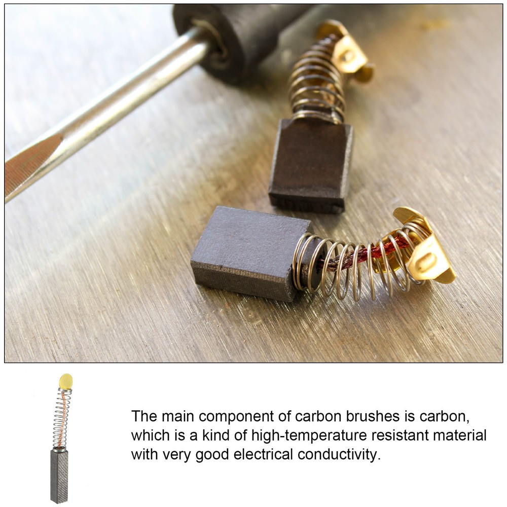 Document About the product:Carbon motor brushes are one of the most commonly replaced power tool components, they are widely used to transmit signals or energy in the fixed parts and rotating parts of some motors and generators. They are widely used in electrical tools and equipment such as circular saws.Good Choice for you:• The main component of carbon brushes is carbon, which is a kind of high-temperature resistant material with very good electrical conductivity.Specification:Carbon Brush Size (Approx) : 20mmx7mmx6mm/0.79x0.28x0.24 inchEasy to install: Worn brushes are the cause of a poorly running motor, replacing the carbon brushes can fix the intermittent motor. New carbon brushes can restore a motor's electric braking.Tips: Please check the carbon brush specifications before ordering. Carbon Brushes, [for Power Motor]- 20mmx7mmx6mm/Black Gold Tone/10 Pcs About the product: Carbon motor brushes are one of the most commonly replaced power tool components, they are widely used to transmit signals or energy in the fixed parts and rotating parts of some motors and generators. They are widely used in electrical tools and equipment such as circular saws. Good Choice for you: • The main component of carbon brushes is carbon, which is a kind of high-temperature resistant material with very good electrical conductivity. Specification: Carbon Brush Size (Approx) : 20mmx7mmx6mm/0.79x0.28x0.24 inch Easy to install: Worn brushes are the cause of a poorly running motor, replacing the carbon brushes can fix the intermittent motor. New carbon brushes can restore a motor's electric braking. Tips : Please check the carbon brush specifications before ordering. Hot Item Payment 1.We accept eBay payment . 2.Payment must be received within 7 business days of auction closing. Shipping 1.We ship to your eBay or Paypal address. Please make sure your eBay and Paypal address is correct before you pay. 2.Items will be shipped within 1-3 business day when we received payment. 3.Delivery time depends on destination and other factors. Description Policy Carbon Brushes, [for Power Motor]- 20mmx7mmx6mm/Black Gold Tone/10 Pcs About the product: Carbon motor brushes are one of the most commonly replaced power tool components, they are widely used to transmit signals or energy in the fixed parts and rotating parts of some motors and generators. They are widely used in electrical tools and equipment such as circular saws. Good Choice for you: • The main component of carbon brushes is carbon, which is a kind of high-temperature resistant material with very good electrical conductivity. Specification: Carbon Brush Size (Approx) : 20mmx7mmx6mm/0.79x0.28x0.24 inch Easy to install: Worn brushes are the cause of a poorly running motor, replacing the carbon brushes can fix the intermittent motor. New carbon brushes can restore a motor's electric braking. Tips : Please check the carbon brush specifications before ordering. Hot Item Payment 1.We accept eBay payment . 2.Payment must be received within 7 business days of auction closing. Shipping 1.We ship to your eBay or Paypal address. Please make sure your eBay and Paypal address is correct before you pay. 2.Items will be shipped within 1-3 business day when we received payment. 3.Delivery time depends on destination and other factors.