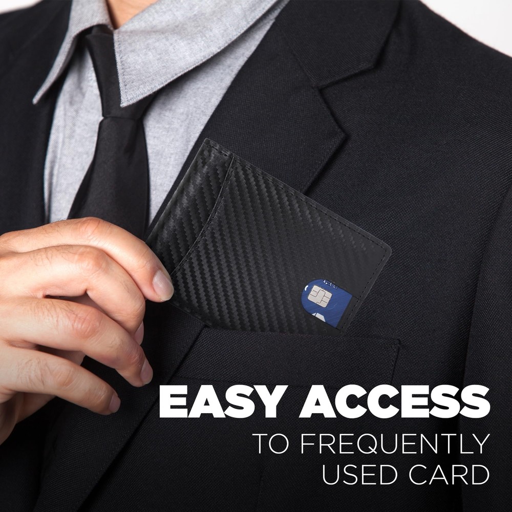 This wallet is sleek, lightweight, and surprisingly spacious! The carbon fiber gives it a premium feel while keeping it super slim. Love how it holds all my cards securely and still slides easily into my pocket. The RFID blocking is a huge plus for peace of mind—no worries about skimming. Perfect for a minimalist who still needs solid organization. Highly recommend!