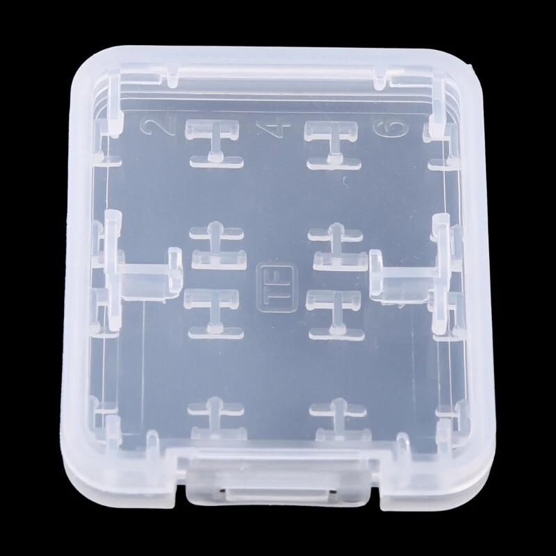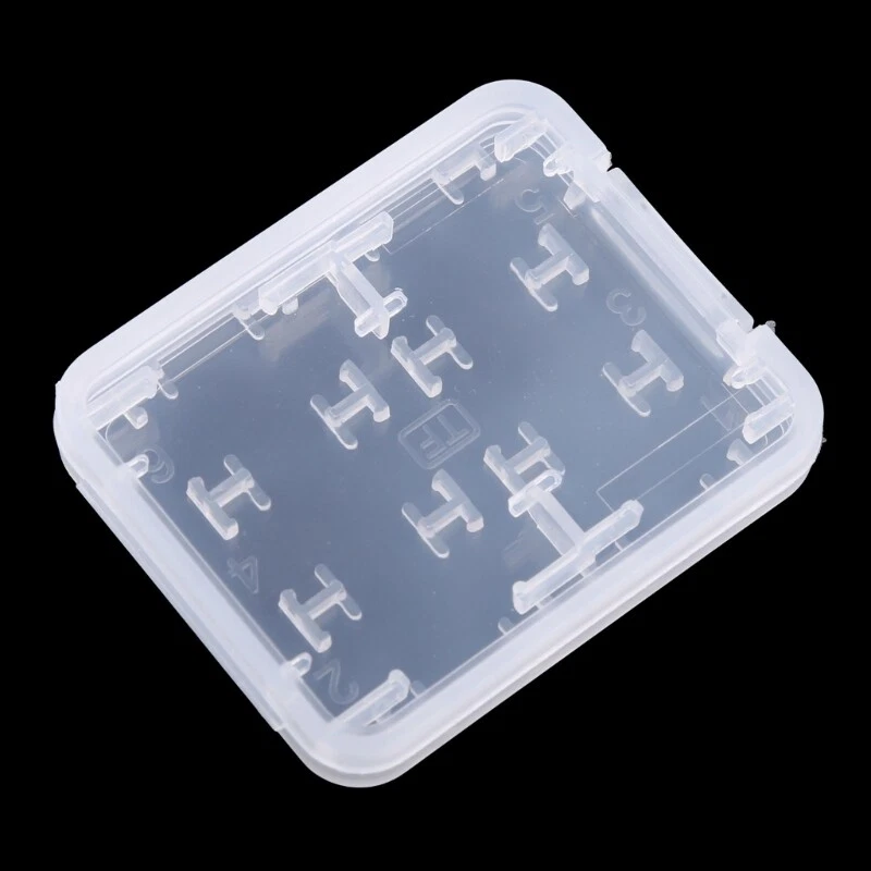 brand new and high quality 01# (10pcs):Carry Storage Box for Card Carry Storage Box for Memory Card Can be used for protecting Memory Card Anti-lost & Keep dry, convenient to store and carry Made of plastic, lightweight 02# (5pcs):8 in Plastic Memory Card Storage for Case Hard storage for case for /MS/Micro for Memory Card. This for case can hold 6pcs of Micro for Cards and memory card and for for Card. Prevent your cards from bending, extrusion damage or solarization. Durable and practical. Portable and light in weight. Size:5.1cm x 4.2cm x 0.8cm/2'' x 1.64'' x 0.31''(approx) Color:Transparent Quantity: 10pcs(01#)/5pcs(02#)(as your choose) Note: 1cm=10mm=0.39inch No retail package. Please allow 1-3mm error due to manual measurement. pls make sure you do not mind before you bid. Due to the difference between different monitors, the picture may not reflect the actual color of the item. Thank you!