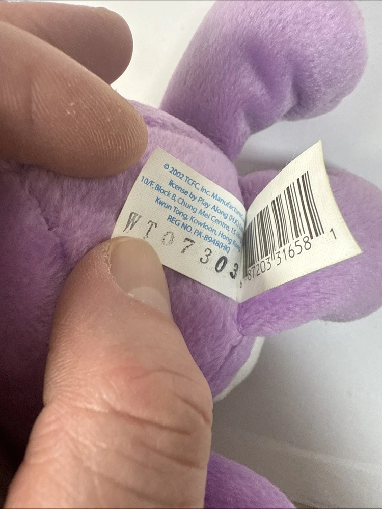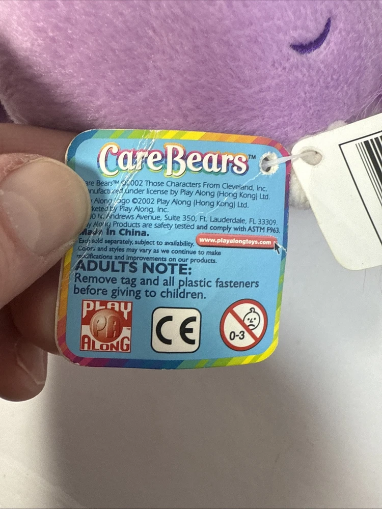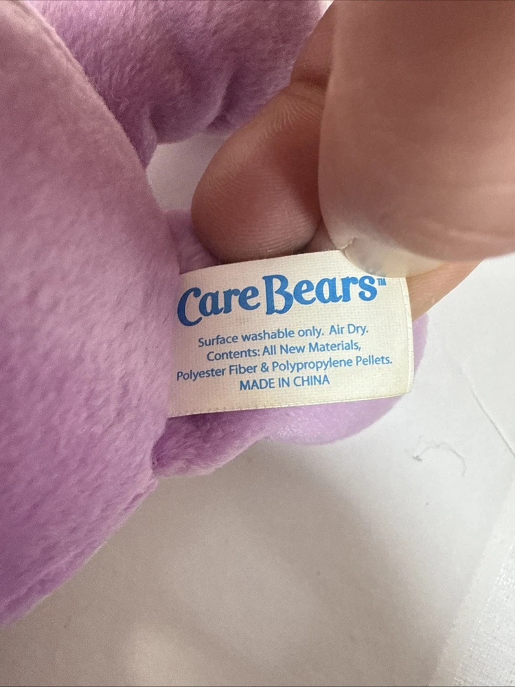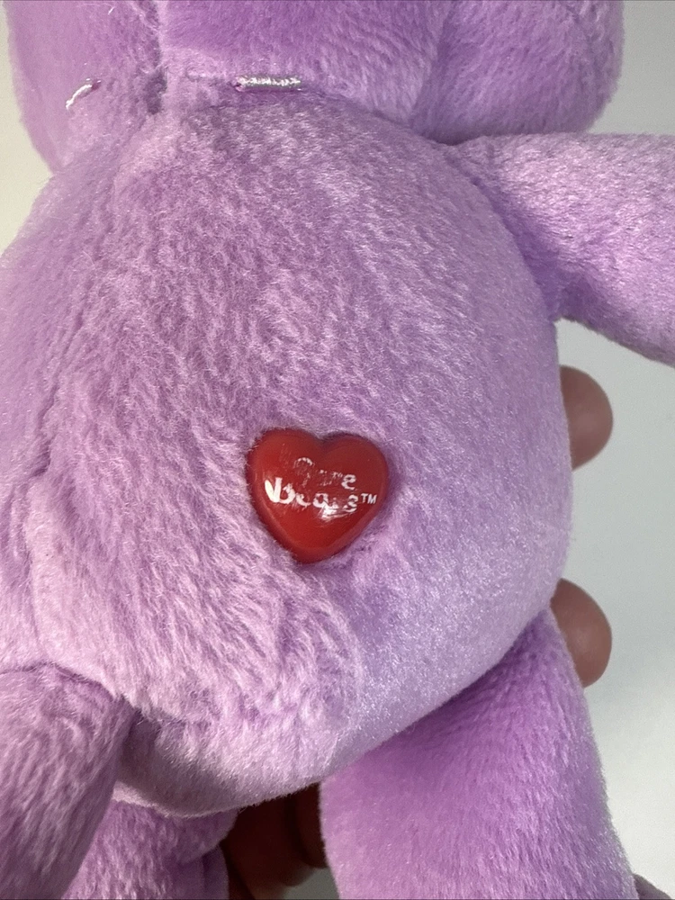Care Bears Share Bear 8" bean bag plush purple bear, 2002 TCFC Play Along w/tags