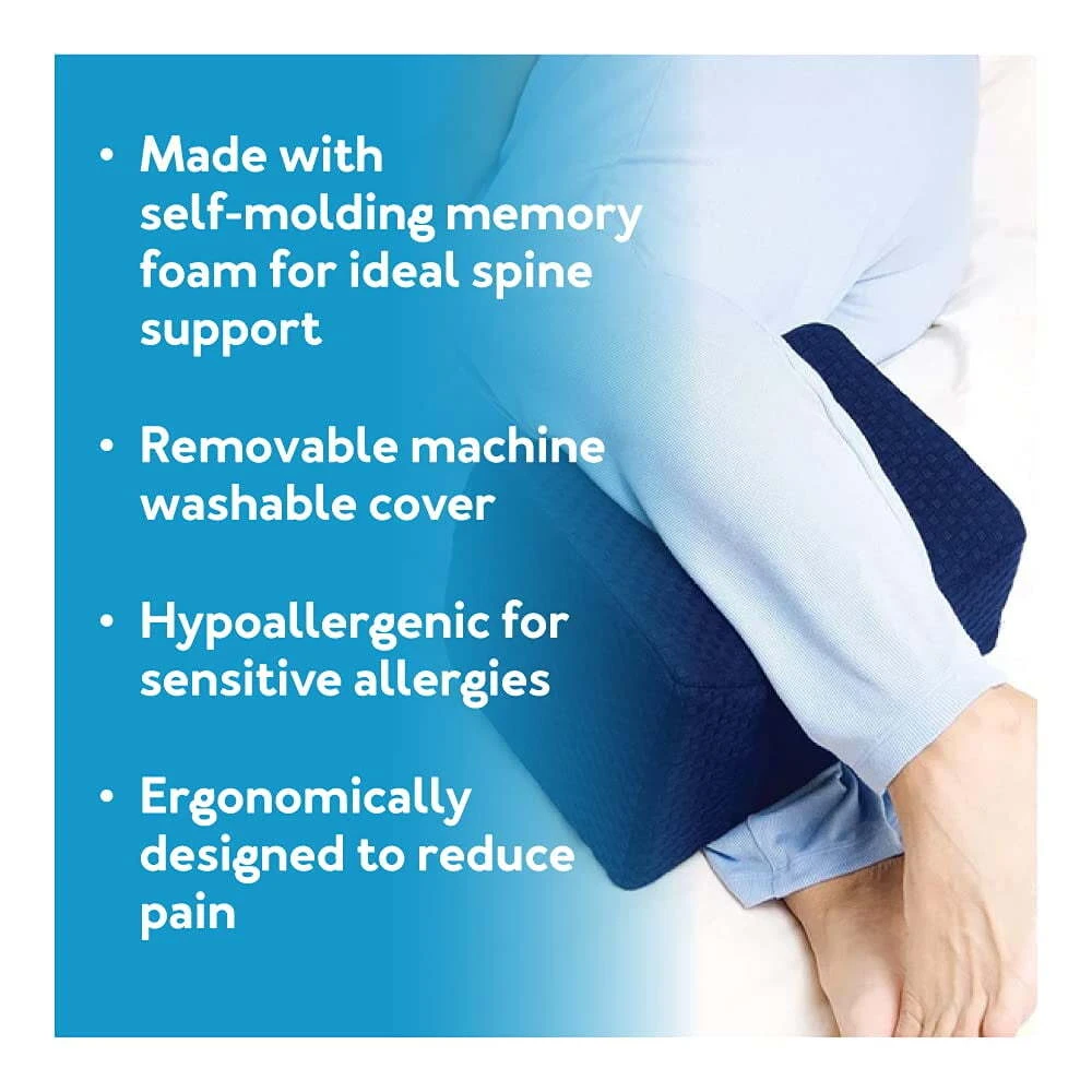 The Carex Memory Foam Knee pillow has an ergonomic design to promote proper spinal alignment and reduce lower back and leg pain. This knee cushion is perfect for people who sleep on their sides naturally or for increasing support during and post pregnancy. Made from premium high-quality memory foam that immediately reacts to provide pressure relief, our knee pillow wedge works great as s a between-the-knee pillow. Our attractive navy blue cover is hypoallergenic and made of soft polyester and rayon. The removable cover is Machine washable, so you can easily keep the cushion clean between uses. Buy your Carex Memory Foam Knee Pillow today to for extra support and comfort. Provides additional comfort with pressure reducing memory foam Ergonomic design promotes spinal alignment High quality memory foam relieves pressure instantly and contours to your body Self-molding foam reduces lower back, leg, hip, ankle, or joint pain Slow memory foam recovery gives longer support and works great as a between-the-knee pillow for side-sleepers Removable cover is Machine washable for easy cleaning Product Height: 8" Product Width: 7.75" Product Depth: 10.5" Product Weight: 1.79 lb. Package Height: 8.1" Package Width: 7.75" Package Depth: 13" Shipping Weight: 1.79 lb. Hypoallergenic