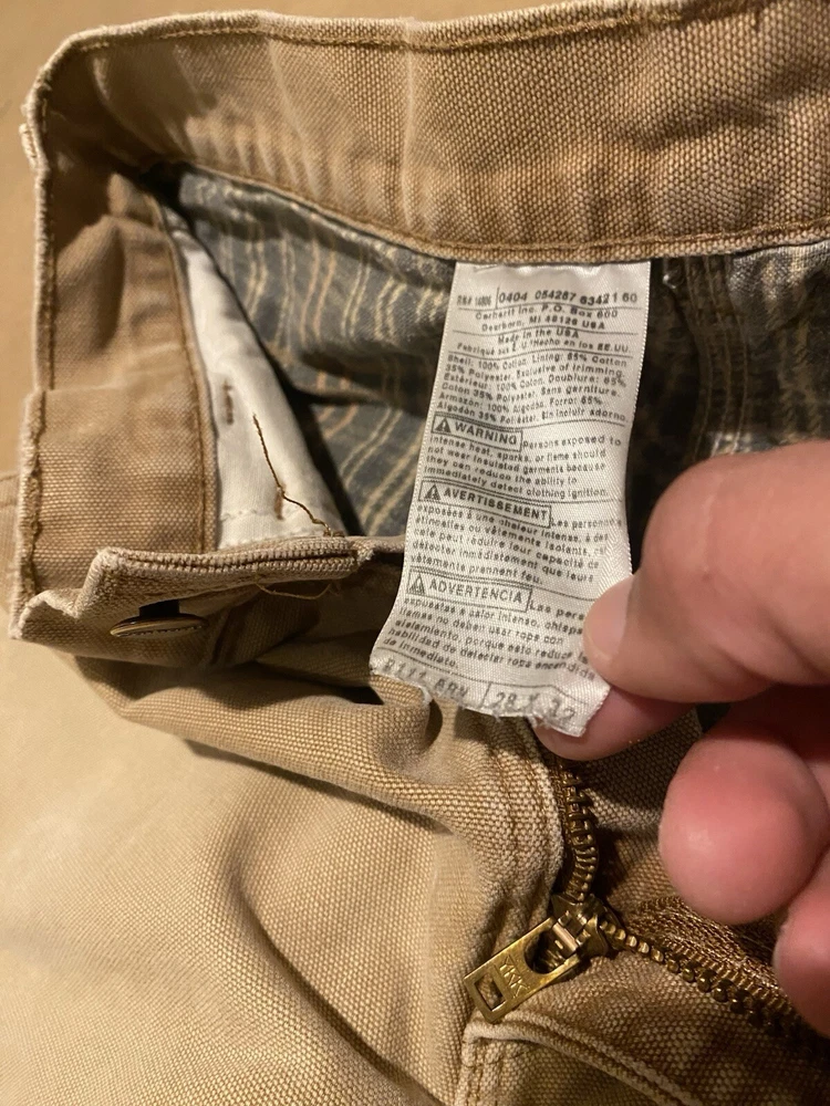 Carhartt B111 Tan Canvas Flannel Lined Carpenter Pants 28 x 32