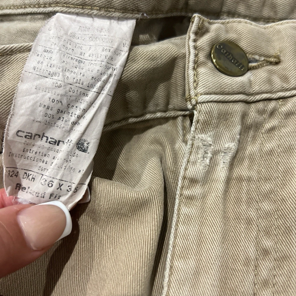 Model: B324 DKH 🪡 Relaxed Fit | 36x36 🔨 Heavy-duty washed duck canvas in faded khaki 🇳🇮 Made in Nicaragua – early 2000s era 🎯 Classic utility/workwear fit w/ reinforced stitching & tool loop 🔥 True vintage Carhartt — worn-in & distressed naturally #VintageCarhartt #Y2KWorkwear #CarharttPants #Gorpcore #UtilityStyle