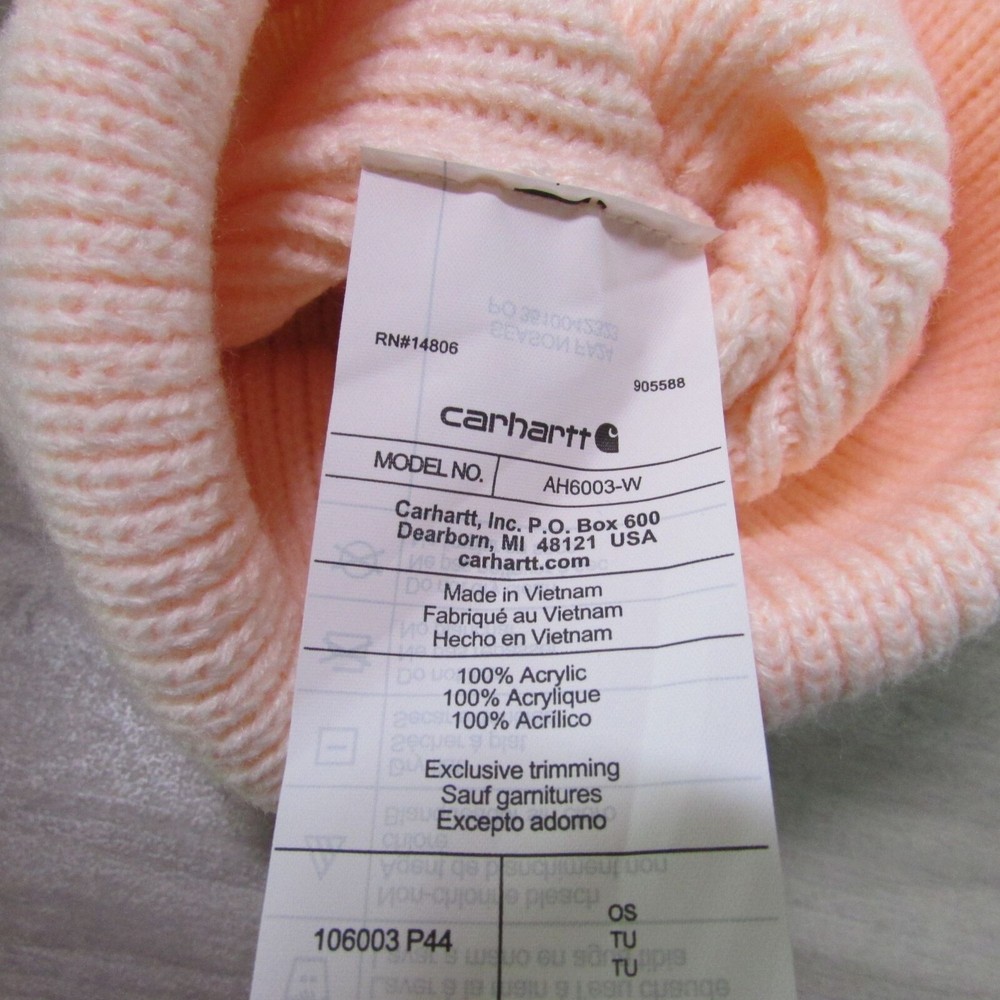 Brand new with tags One Size Brand: Carhartt Color: Georgia Peach Style # AH6003 Knit Pom Pom Cuffed Beanie Winter Stocking Cap Hat