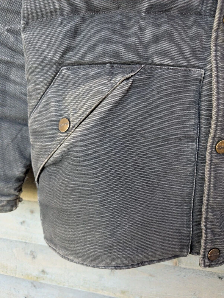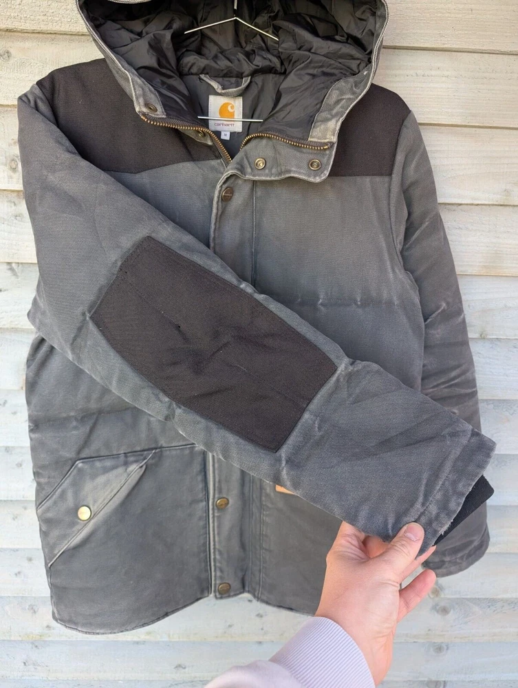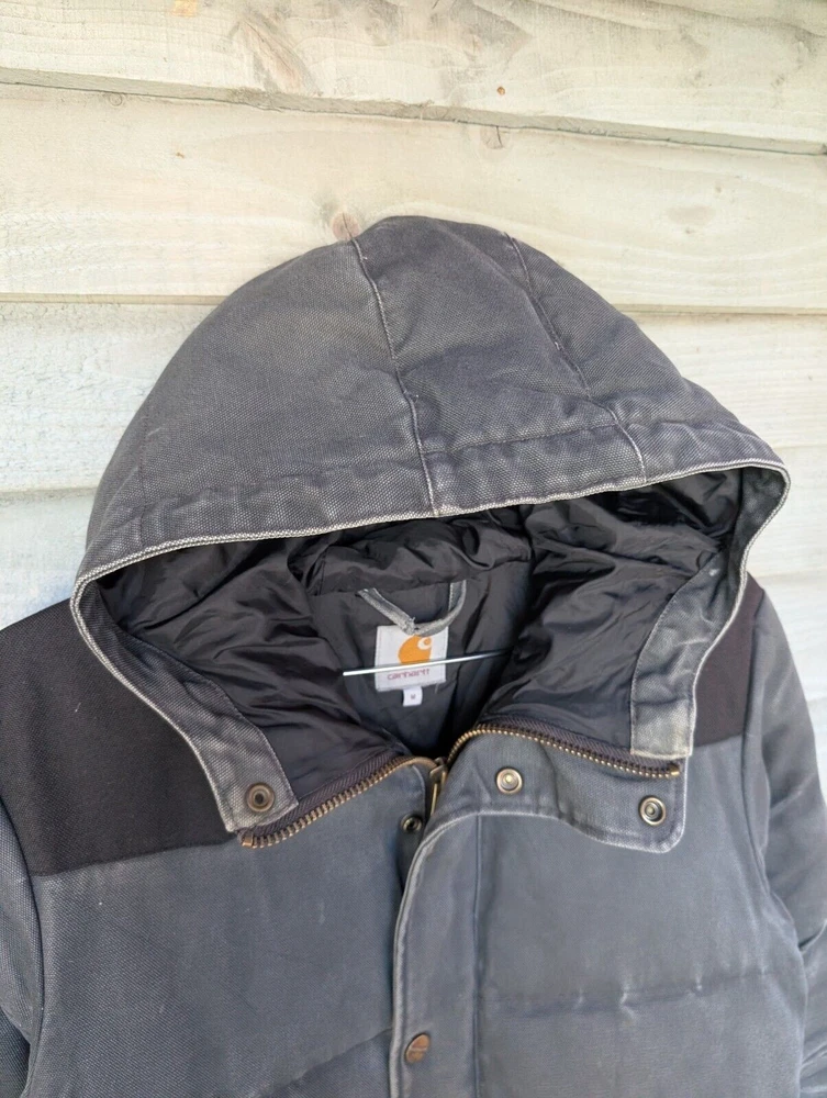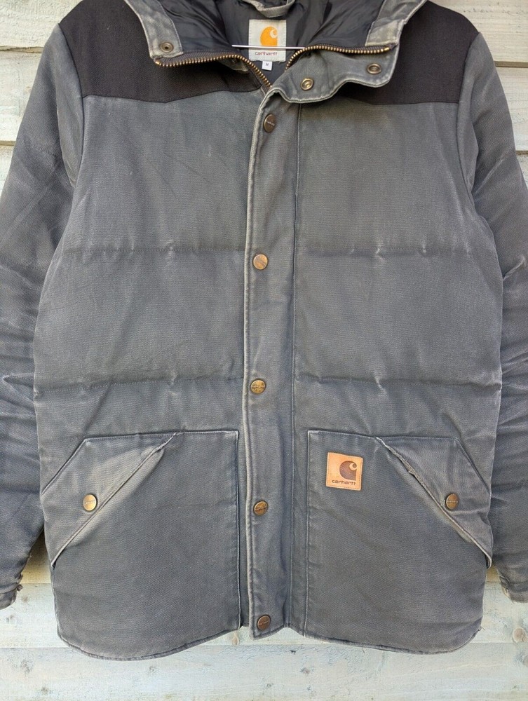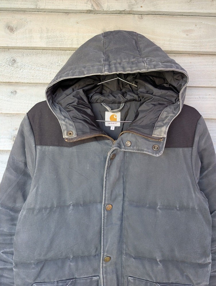 Carhartt Douglas Jacket Grey Barn Chore Work Coat USA Hooded Canvas Mens Medium Pit to pit 22" | Length 28.5" For a Carhartt work wear piece this is in good preloved condition with some nice wear in some places (Pictured)
