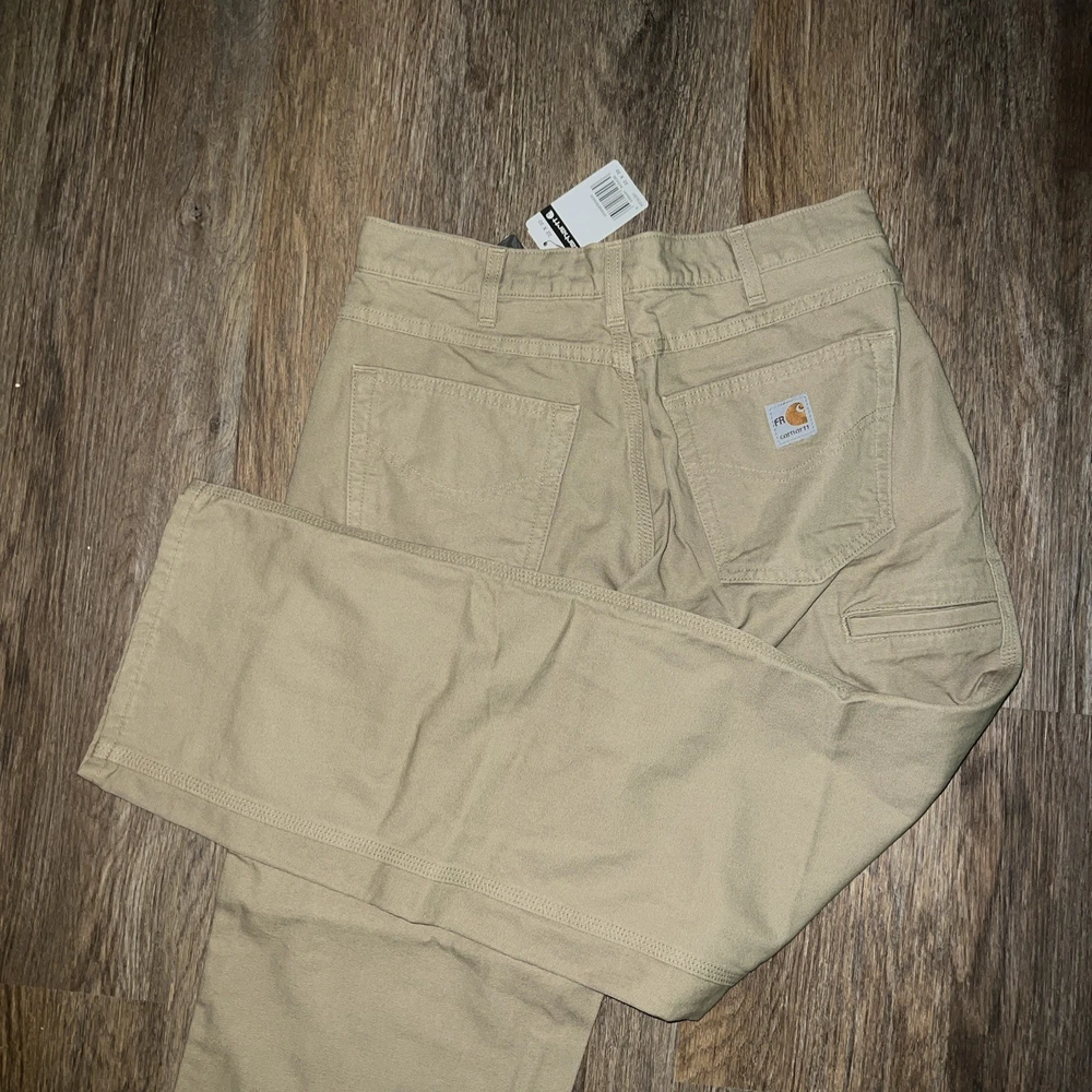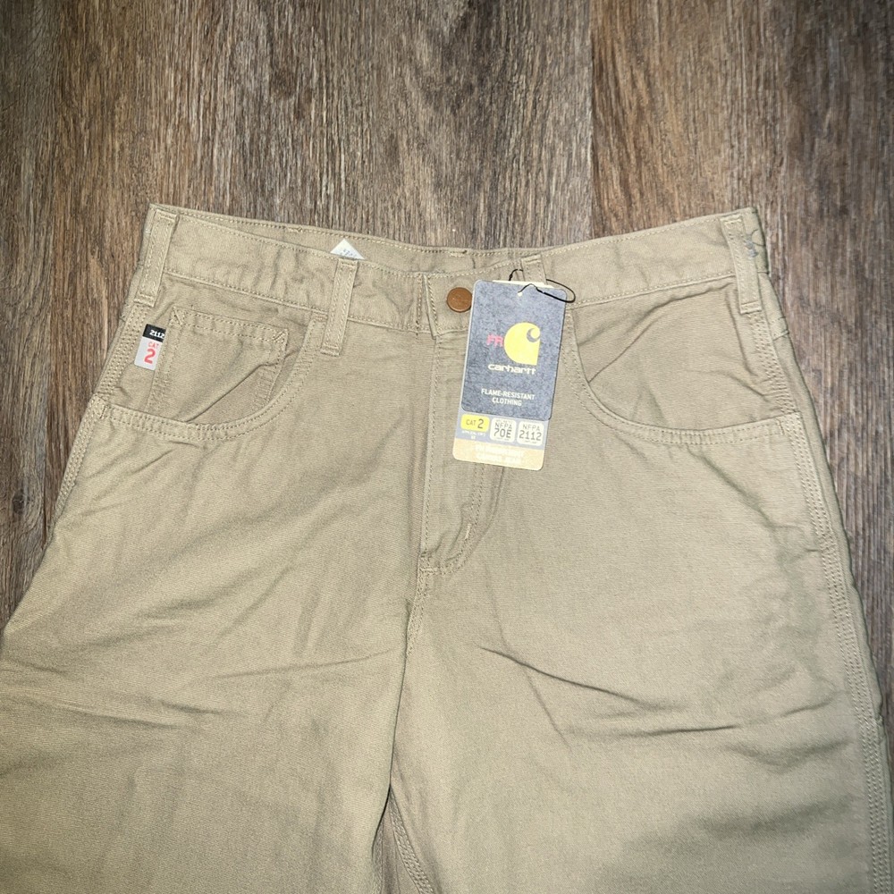 The Carhartt Men's Flame Resistant Canvas Cargo Pant in Golden Khaki is a durable and practical choice for men's clothing. Made of flame-resistant canvas fabric, these pants feature a solid beige color, zip and button closure, and a regular fit. With a 5-pocket design and cargo pockets, they offer both style and functionality. The 32-inch waist and 30-inch inseam make them a versatile option for everyday wear in any season. The Carhartt brand ensures quality and reliability, making these pants a reliable choice for any wardrobe.