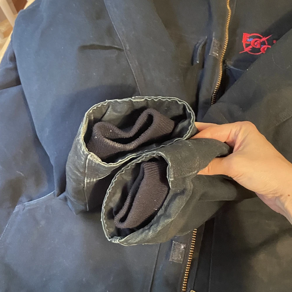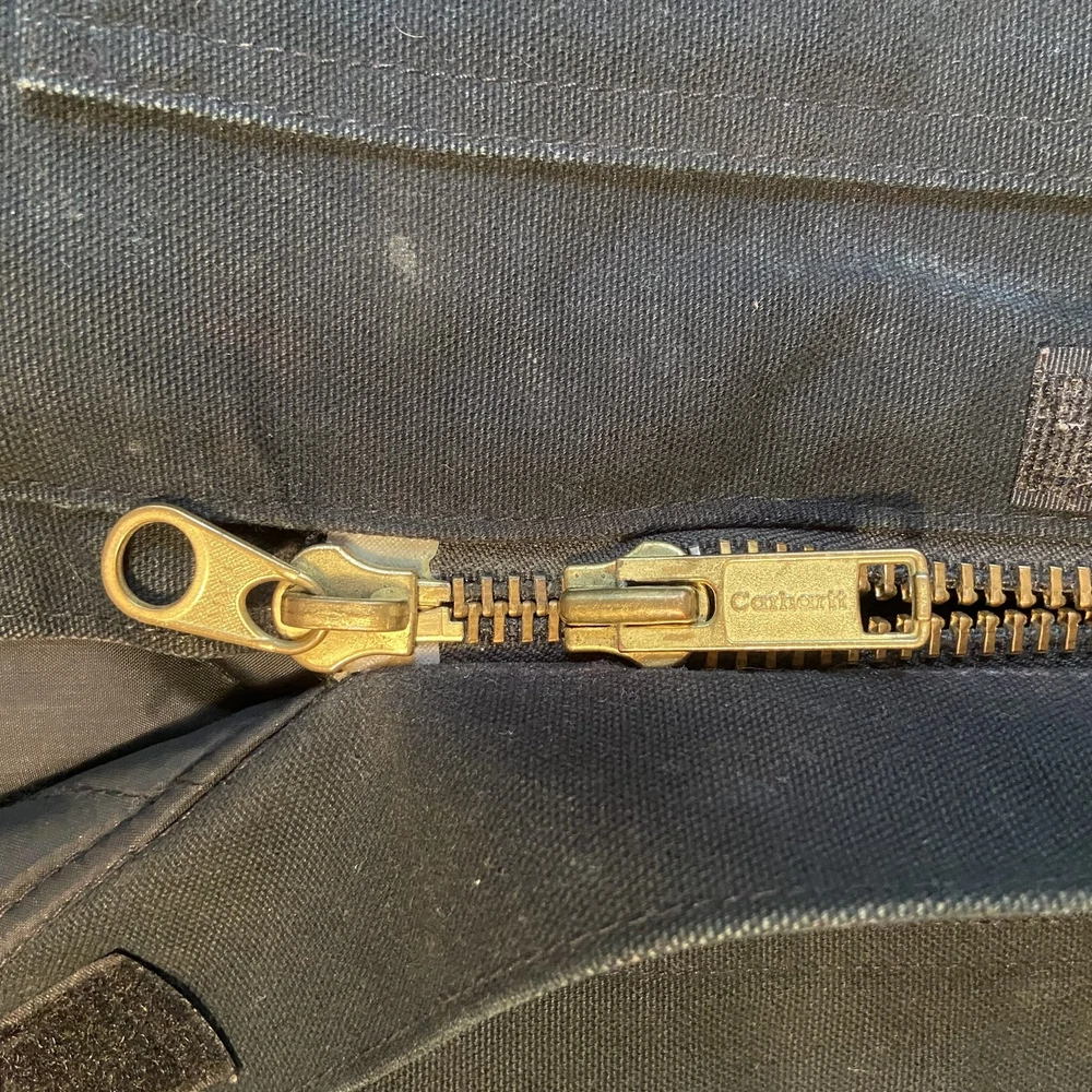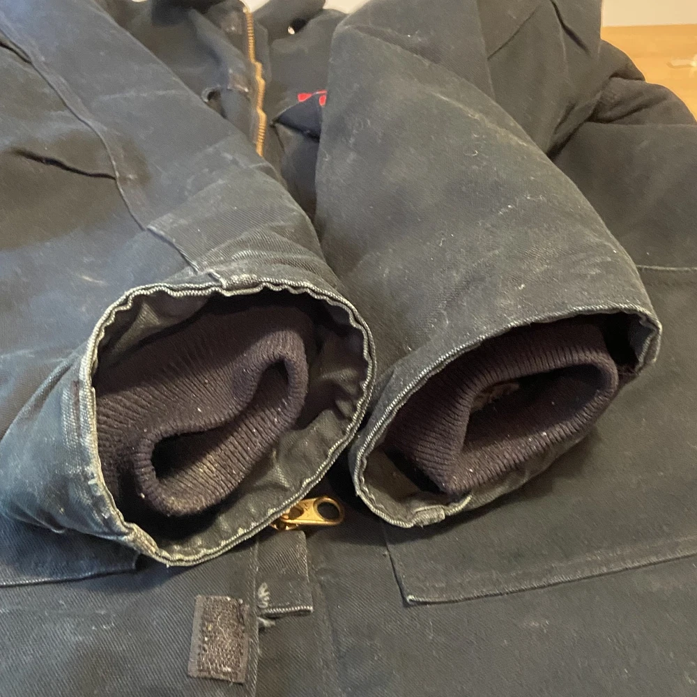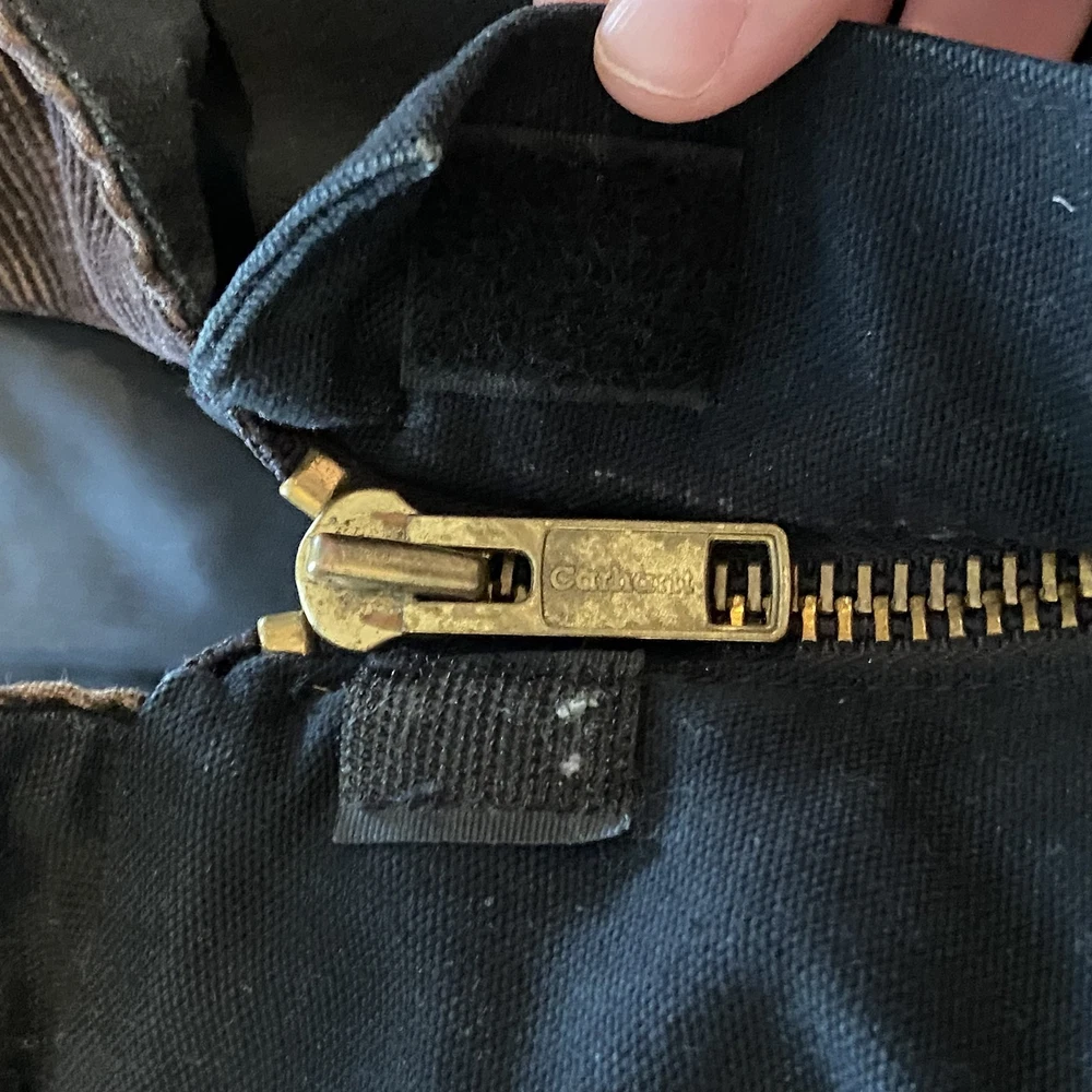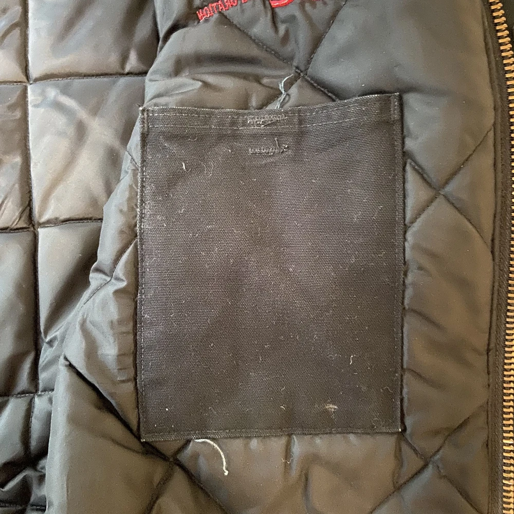 Carhartt Jacket Mens Extra Large Black Quilted Workwear Corduroy Collar EGC Logo Condition: Good pre-owned condition with some signs of moderate wear and a few minor stains and marks present throughout. Notable flaw: There is a section of fraying/wear on the back right side. No major holes or tears. All zippers and snaps function as intended. Shell: Heavyweight, durable outer canvas fabric Lining: Black quilted lining for added warmth Brown corduroy collar with hanging loop Front features two large flap chest pockets and two lower hand pockets Inner includes two large utility pockets (one zip, one open) Embroidered EGC Electrical General Corporation logo on chest Classic Carhartt tag on left chest pocket and inside label Dual brass Carhartt branded zipper with storm flap Heavy-duty ribbed knit inner cuffs Snap buttons at back collar for optional hood attachment (hood not included) Estimated size: Extra Large (XL) - see measurement photos for reference (approx. 29" pit-to-pit, 34" length) Great durable workwear or chore coat, ready for work or casual wear Style code and further details on tags are faded and not fully legible Color: Black with brown collar This is a classic Carhartt cold-weather coat ideal for work or outdoor use