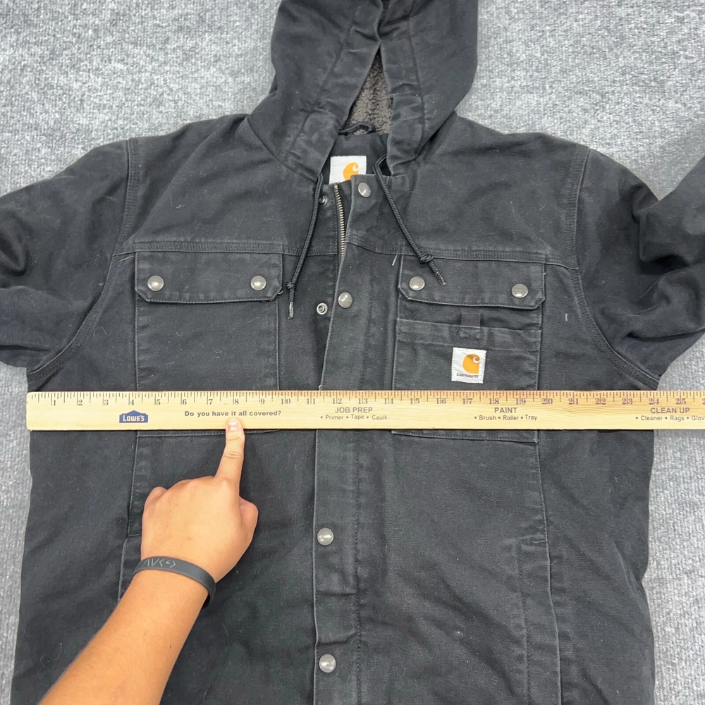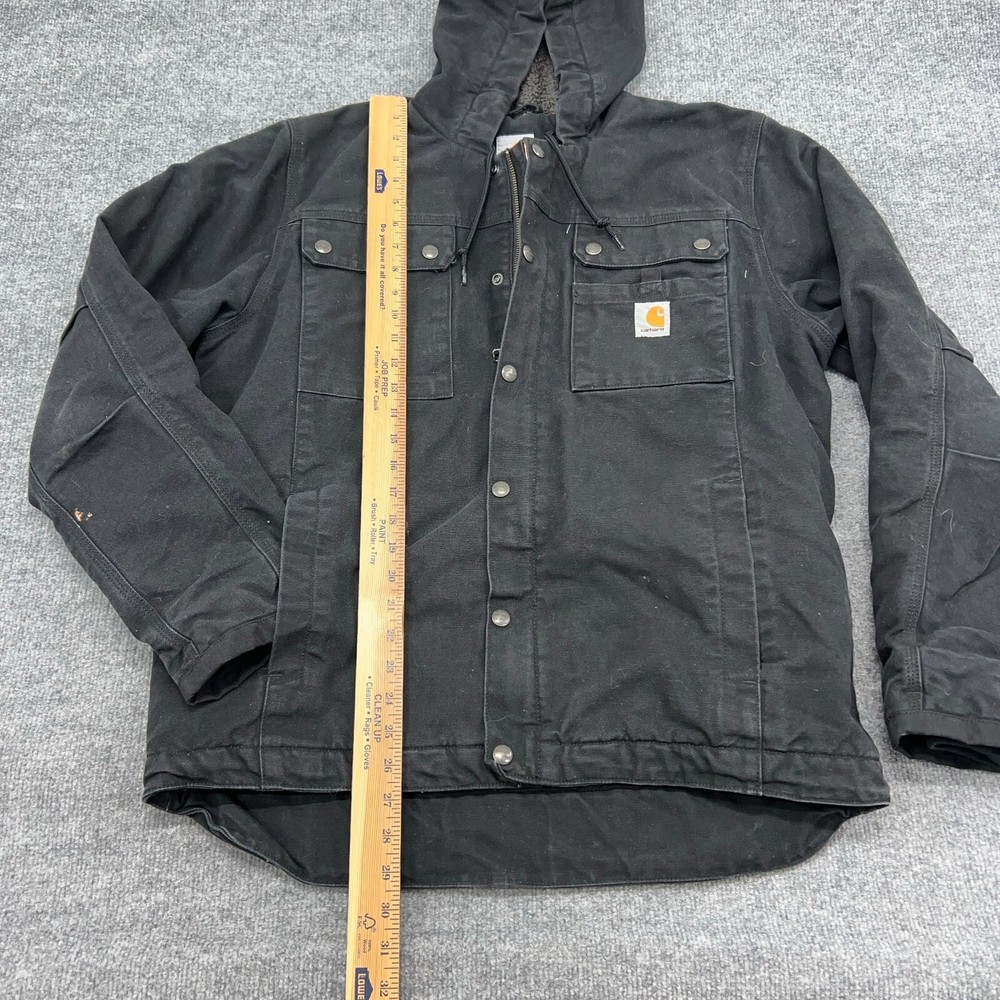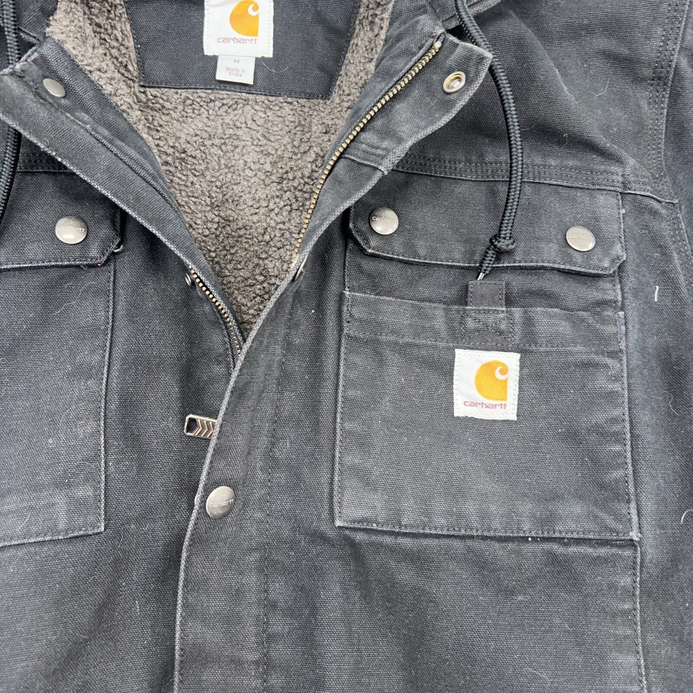 Carhartt Jacket Mens M Black Bartlett Sherpa-Lined Utility Washed Duck Hooded In good condition. Please see photos for measurements.