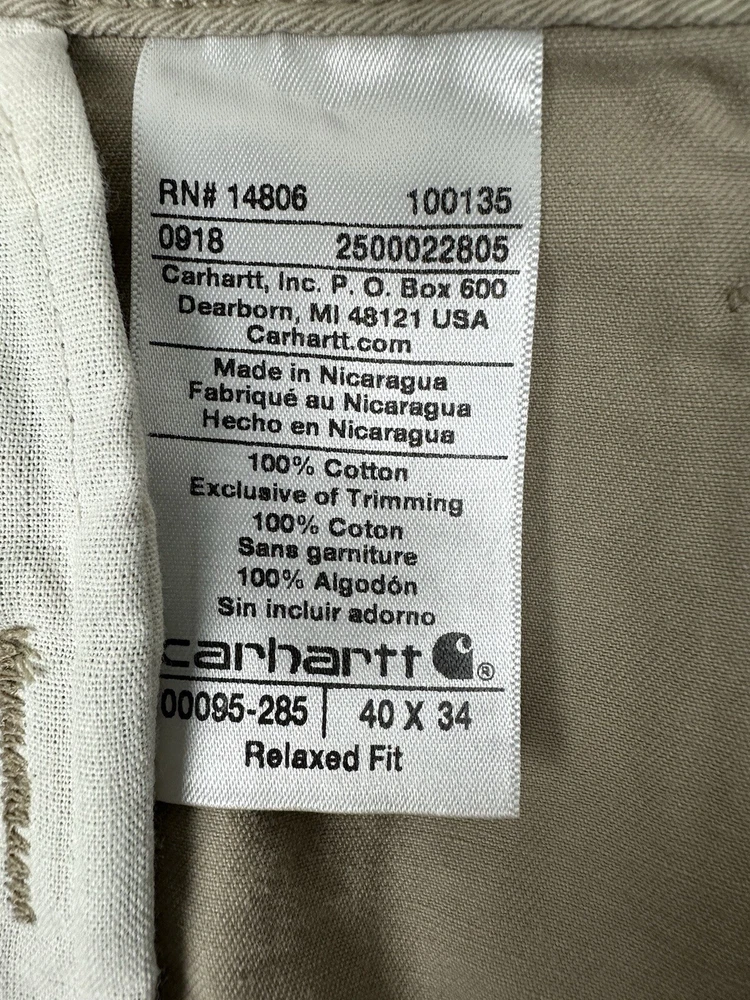 Carhartt Men’s Relaxed Fit Tan Pants PLEASE MEASURE TO ENSURE CORRECT SIZE AND LENGTH -Condition: Excellent -Size: 40x34 -Measurements: -Seam to seam- 22” -Shoulder to bottom- 45” -Crotch to top- 12” -Crotch to bottom- 33”