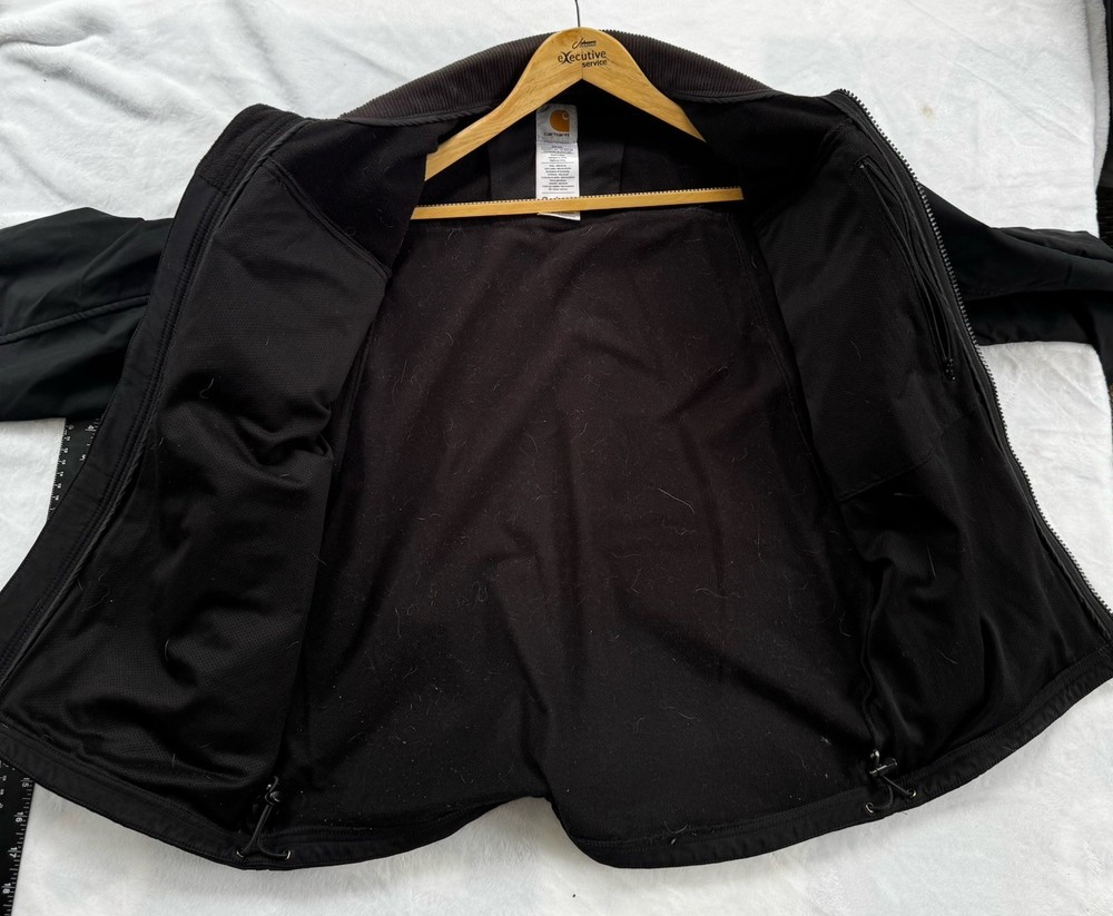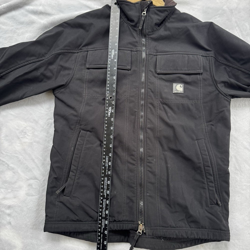The Carhartt J176 Men's Small Regular Black Soft Shell Traditional Jacket is a durable and versatile outerwear option for men. Made with a nylon outer shell and lined with cozy polyester fleece, this jacket is perfect for colder weather in winter, fall, or spring. The full zip closure, zipped pockets, and breathable design make it practical for everyday wear, while its water-resistant and wind-resistant features add extra protection against the elements. With the trusted Carhartt brand and a classic black color, this jacket combines style and functionality for any man's wardrobe.