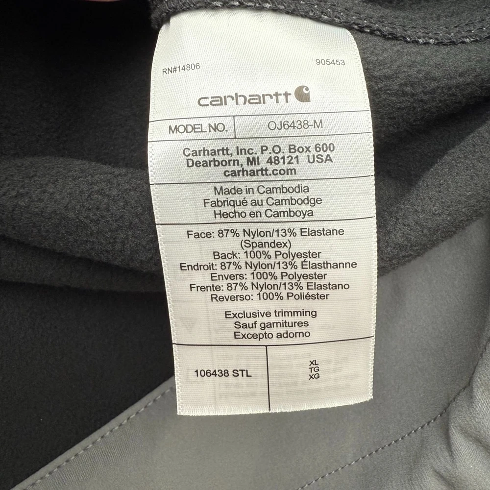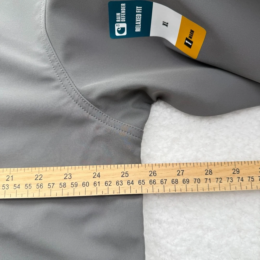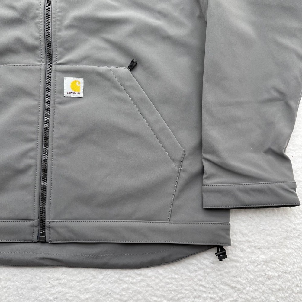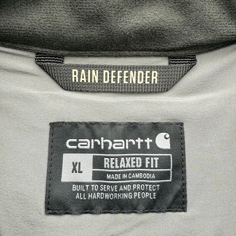 The Carhartt Rain Defender Softshell Jacket in Men's Size XL is a versatile and practical choice for outdoor activities in various seasons. Made with nylon outer shell material and insulated with polyester, this jacket is water-resistant and wind-resistant. Its stand-up collar and full zip closure make it easy to layer up for maximum comfort. With multiple pockets for convenient storage, this jacket is perfect for travel, casual wear, or workwear. The mid-length design and relaxed fit ensure a comfortable and functional garment for any outdoor adventure.