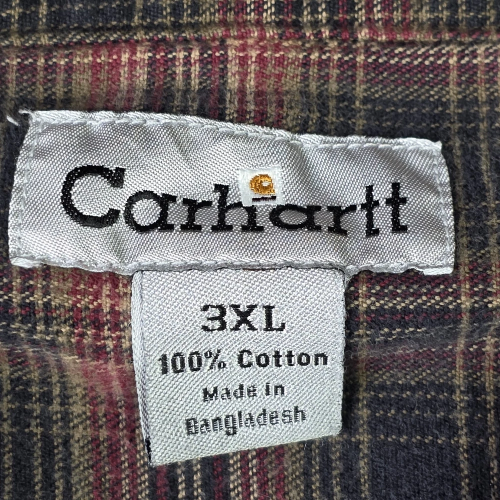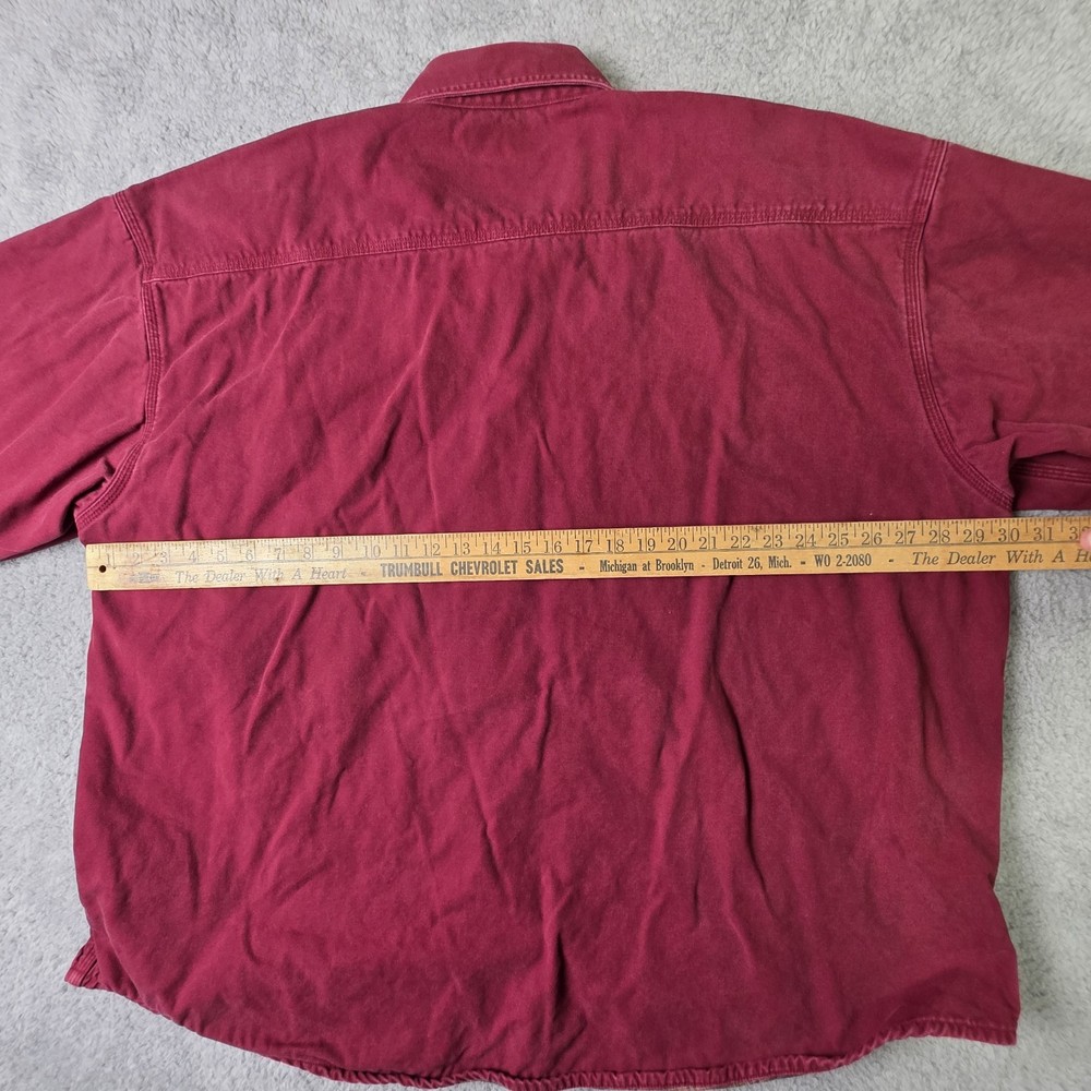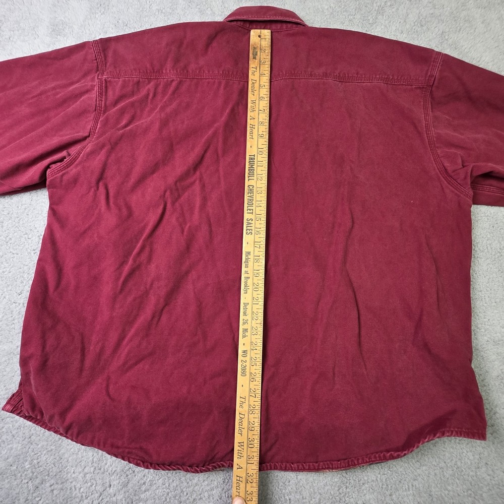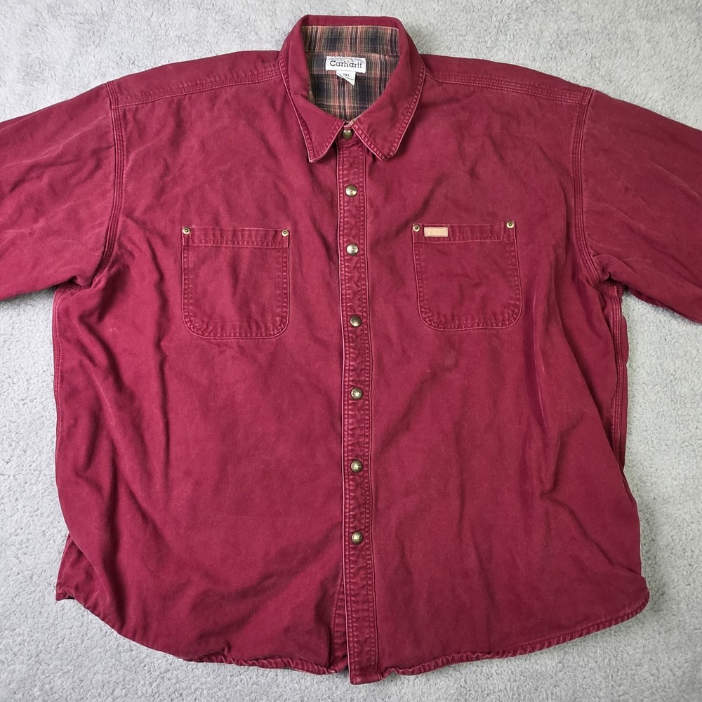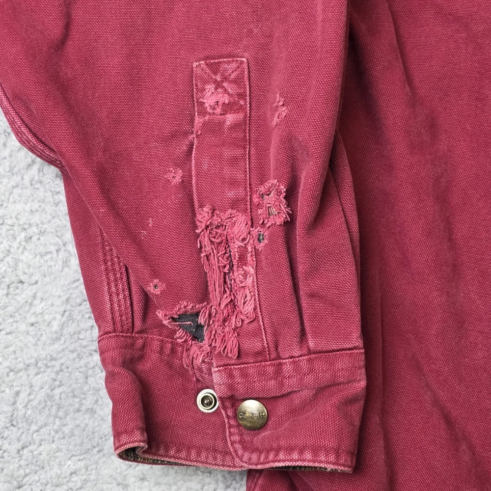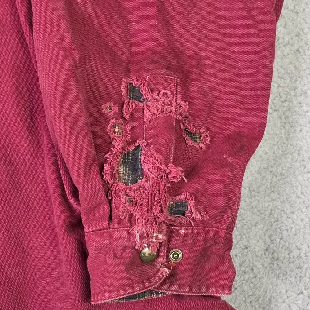 Carhartt Canvas Shacket S96-DKR Mens 3XL, Pit to Pit 30", Shoulder to Hem 31" Dark Red Flannel Lined Snap Up Shirt/Jacket Distressed Inner Forearm/Wrist Area