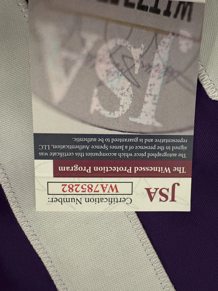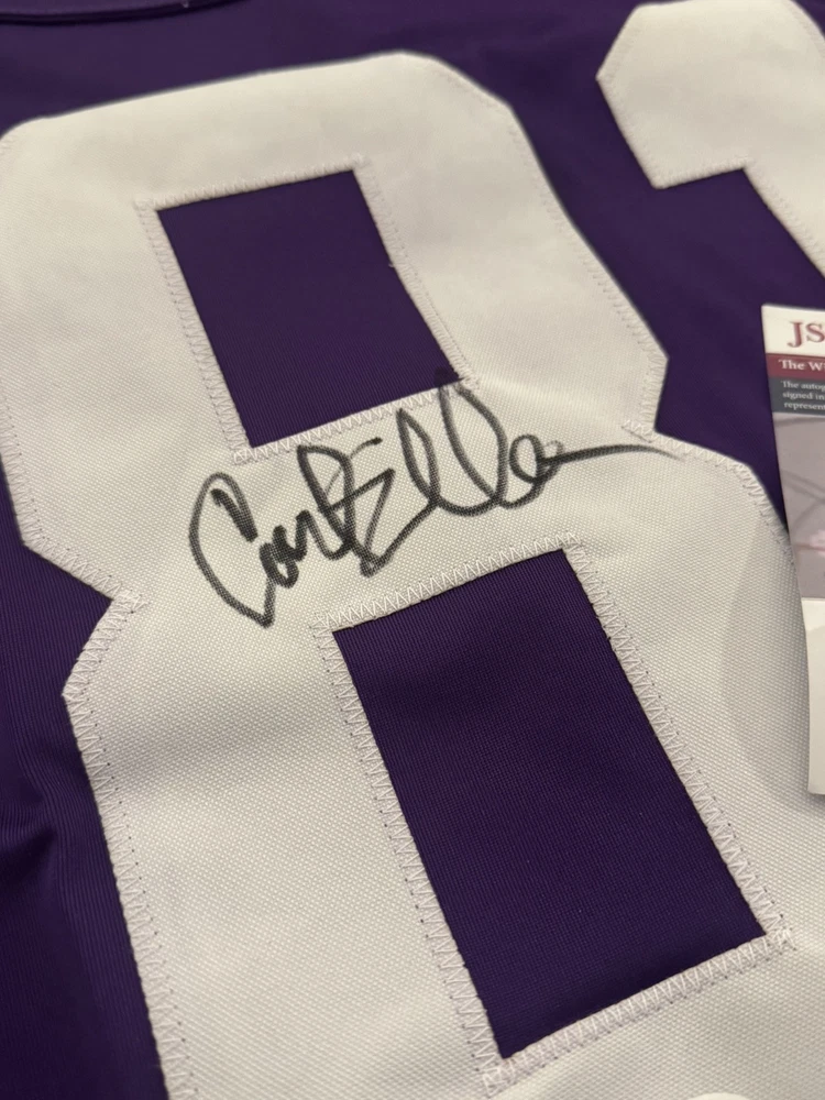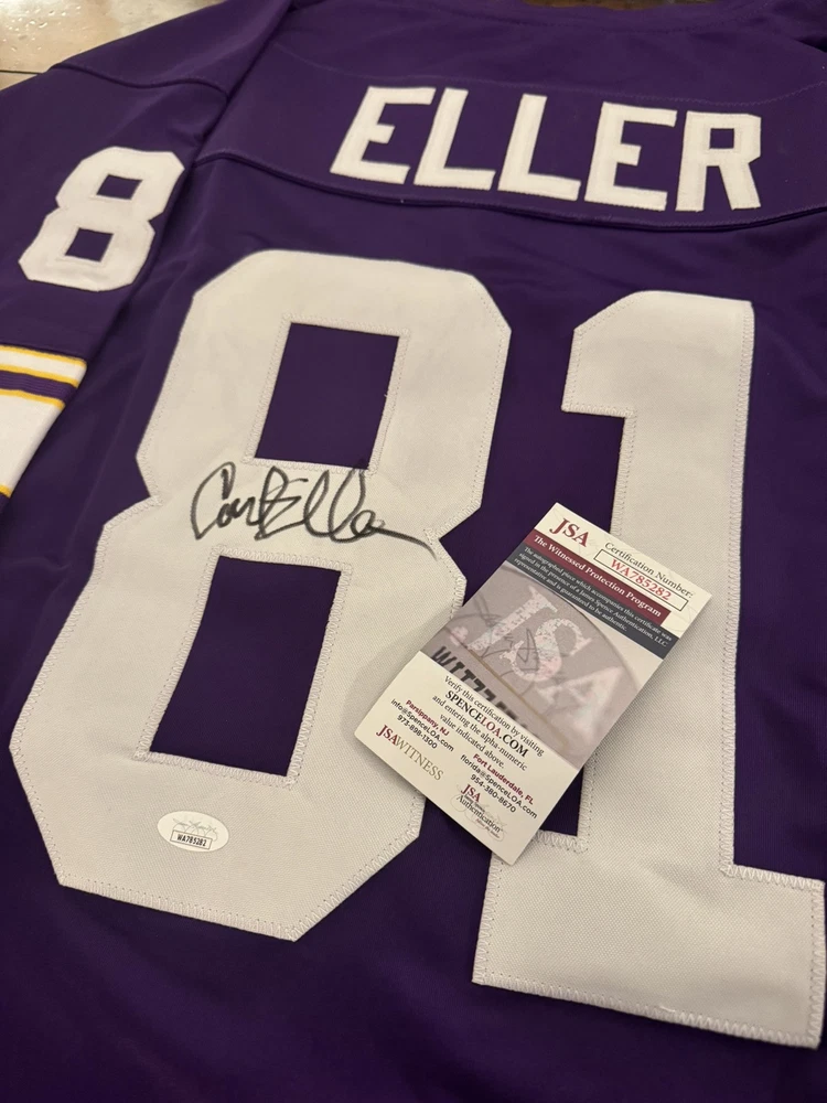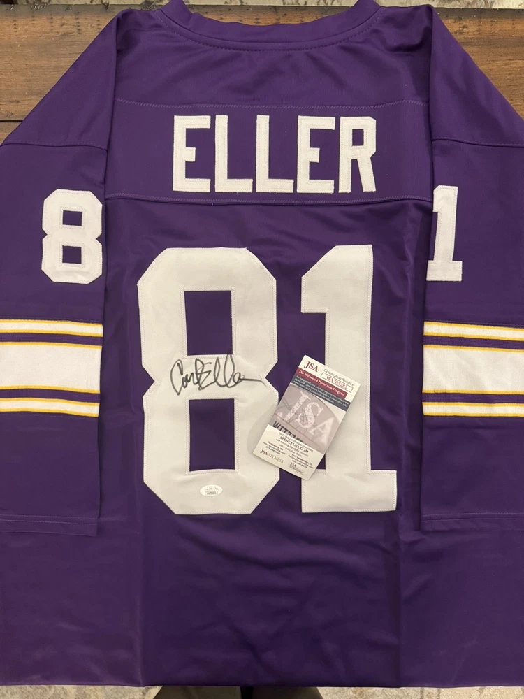 Own a piece of Minnesota Vikings history with this Carl Eller signed jersey. The jersey is an original piece and comes with a JSA Certificate of Authenticity. This purple jersey is a must-have for any serious football fan and collector. The signature is located on the front of the jersey and is visible in the provided photos. Add this unique item to your collection today!