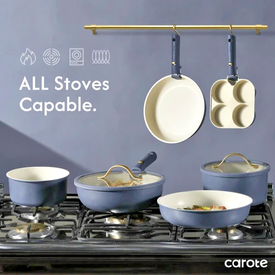 This cookware set is a game-changer! The nonstick surface makes cooking and cleanup effortless, while the detachable handles save so much space. Love the vibrant blue color—it brightens up my kitchen. The pans heat evenly and work perfectly on my induction stove. Oven-safe and durable, this set has everything I need for everyday meals. Highly recommend for anyone wanting stylish, functional cookware!