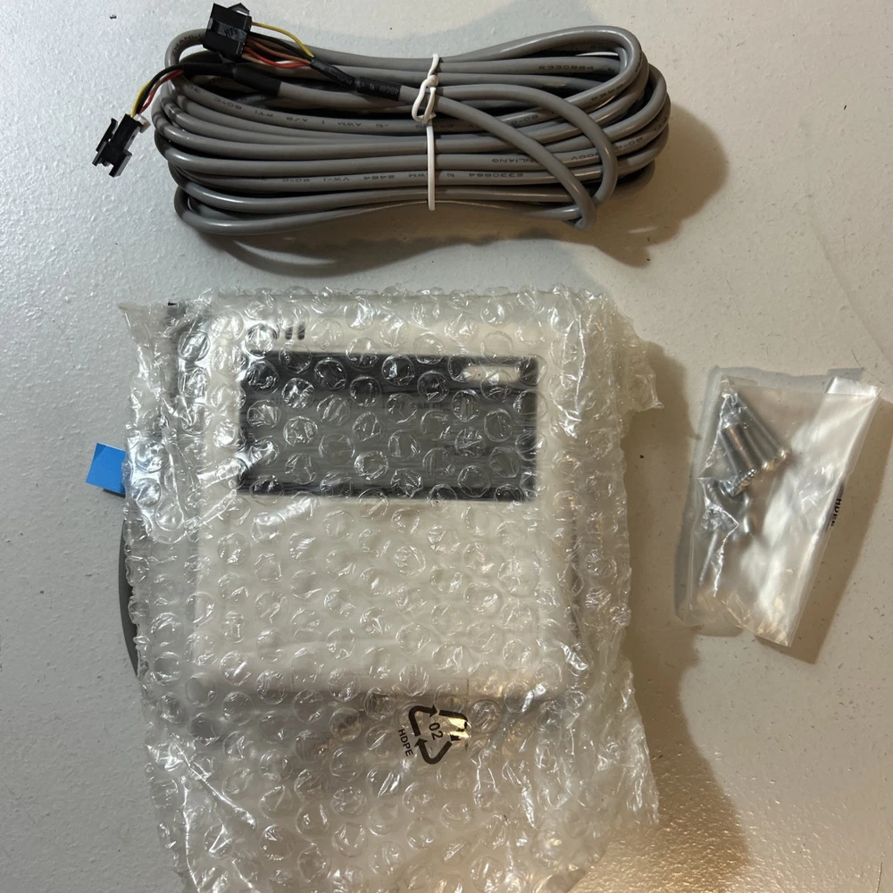New open box. This is a Carrier KSACN0401AAA Wired Remote Controller Kit, featuring a 7-Day programmable thermostat with a white color design. It operates on a 3V button cell battery and is suitable for heating, cooling, and air control in home improvement settings.