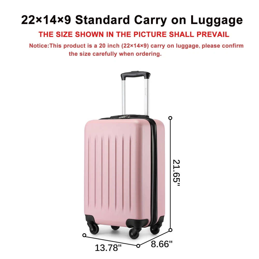 PORTABLE MINI CARRY ON: Product dimensions (includes wheels and handles): 18.9” x 11.8” x 7.9”. Weight: 4.7 lbs. PACKING CAPACITY: 27L. Even 6-year-old children can easily use our products. 19 inch carry on luggage meets most carry-on size restrictions for those 1-3 days traveling domestically. LIGHTWEIGHT AND DURABLE HARD SHELL: Made from durable, lightweight ABS hard shell, scratch and pressure-resistant, dirt-proof and waterproof. luggages go through insanely strict quality control test standards, to ensure our products can withstand the rigour of modern transport. IDEAL INTERIOR SPACE TO KEEP BELONGS TIDY: Designed with 2 roomy fully lined compartments. The packing straps hold your clothes in place, a zipper mesh pocket for anything you want to keep separate. Not only a perfect small luggage for yourself, also a cute gift for your families, friends, or school children. MORE EFFORTLESS TRAVLING: Our hardshell luggage comes equipped with Quiet airplane spinner wheels and an adjustable 3-level aluminum telescoping handle(extended heights: 18.9inch), allow you to quickly maneuver in tight spaces and it’s sturdier than most of the telescoping handle on the market. COMFORTABLE AND SAFE: Comes with a 2-year warranty. Safety Combination Lock & Securely Mounted Short Handle, you can make sure your valuables are secure and safe and use conveniently when traveling. Hardside carry on luggage perfect for work travel, weekend getaways, or as international carry-on.