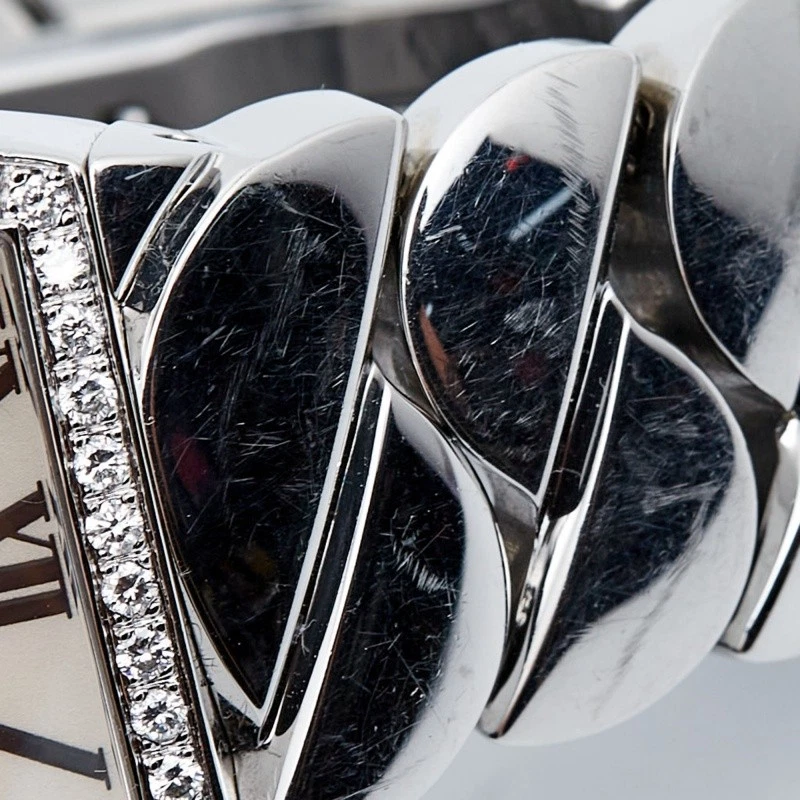 Wristwatches work as well as jewelry when accessorized right. Take a look at the beauty of this Cartier. It comes made from stainless steel with a braid like bracelet and a diamond embellished bezel, fully ready to charm. The silver dial is fixed with Roman numeral hour markers, two sword shaped hands, and a secret signature at VII. A water resistance of 30 meters and a concealed clasp make the watch ready to perfectly sit on your wrist.Certified by The Luxury Closet - This item has gone through a detailed authentication process overseen by our experts. We offer a lifetime guarantee of authenticity on all our items. Import duties, taxes and charges are not included in the item price. These charges are the buyers responsibility. Please check with your country’s customs office to determine what these additional cost will be prior to buying. Our eBay Store About Us Contact Us Add to Favorite Sellers Cartier Silver Stainless Steel Diamond La Dona W660022I Women's Wristwatch 28 mm $10153 Wristwatches work as well as jewelry when accessorized right. Take a look at the beauty of this Cartier. It comes made from stainless steel with a braid like bracelet and a diamond embellished bezel, fully ready to charm. The silver dial is fixed with Roman numeral hour markers, two sword shaped hands, and a secret signature at VII. A water resistance of 30 meters and a concealed clasp make the watch ready to perfectly sit on your wrist. Product Details Brand Color Silver Dimensions Material Stainless Steel Size 28 mm Outsole Width Outsole Length Heel Height Includes The Luxury Closet Packaging, 2 Extra Links Certified by The Luxury Closet This item has gone through a detailed authentication process overseen by our experts. We offer a lifetime guarantee of authenticity on all our items. How We Check The in-house team of experts at The Luxury Closet is highly trained to verify the authenticity and the condition of the luxury products. They ensure that only 100% authentic items are put on sale.The evaluation process is unique with its own mix of assessment criteria and differs according to the category. Each item is evaluated based on the following combination of hallmarks, hardware, stitching, symmetry, material, craftsmanship, stamping, codes, hologram stickers, and packaging. Our authenticators also check if the items have been modified or amended (e.g., aftermarket diamonds, replaced batteries, repaired bags, etc.) International Buyers Import duties, taxes and charges are not included in the item price. These charges are the buyers responsibility. Please check with your country’s customs office to determine what these additional cost will be prior to buying.