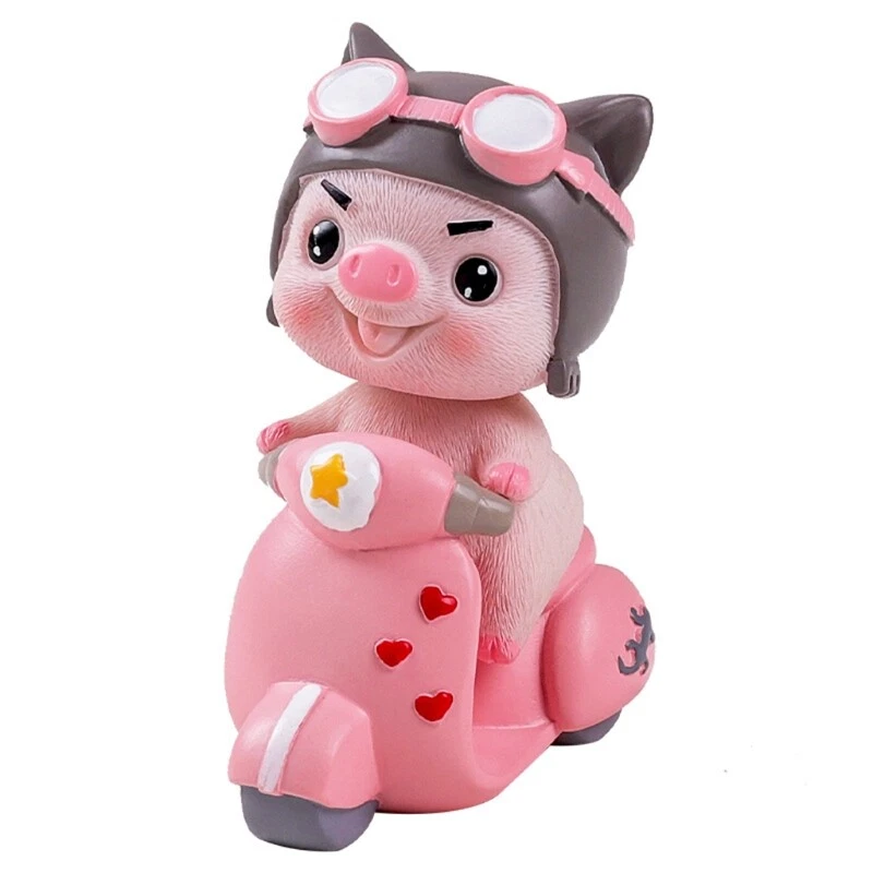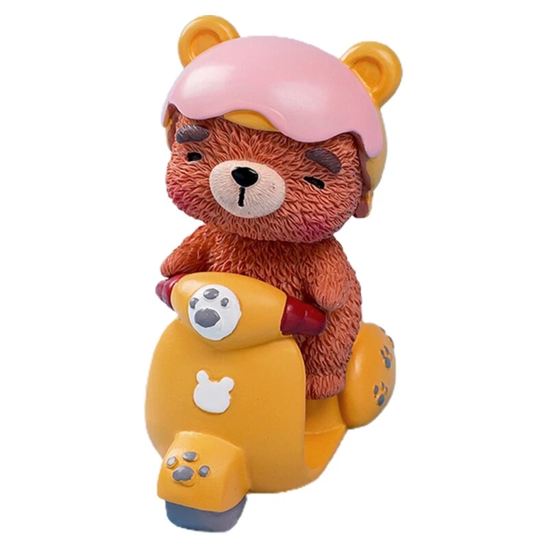 Cartoon Animal Resin Figurine Toy Pig Bear Riding Motorcycle Statue Car Ornament