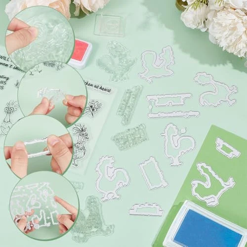 Menu 1. We require immediate payment. 2. We currently accept payment via eBay managed payments only. 3. Once payment is cleared, we will dispatch your shipment within 1-3 business days. Please refer to the "Shipping" tab for more information regarding shipping speed to your destination. Cartoon Chicken Clear Stamp and Metal Die Set Cartoon Rooster Transparent Stamp and Die Cut for Card Making Farm Animals Stamps and Dies for DIY Scrapbooking Album Paper Craft Supplies Product description CARTOON ROOSTER DESIGN: Our animals silicone clear stamps design mainly features a cartoon rooster pattern, which includes five different movements of roosters and English letters, "I will rise, but I won't shine", "Birthday wishes", "Shake a tail feather",etc.. Die cutting can make cartoon roosters into three-dimensional shapes, which is very suitable for manual production. EASY TO USE: Simply peel off the cartoon rooster design transparent stamps from the transparent paper, apply it to an acrylic block (not included), print it with ink on the stamp, place the image on the desired surface, and then press firmly. Die cutting can help you quickly obtain a shape that matches the silicone transparent seal. WIDELY USED: Cartoon rooster pattern stamps are used for card making, photo albums, diaries, invitations, envelopes, notebook covers, storage boxes, decorations, and more. Suitable for exquisite handmade creations, your handmade creations will be a meaningful gift for friends. HIGH QUALITY: Our transparent stamps are made of durable silicone, with a soft texture that is skin friendly and safe to use. The die-cut parts are made of mental and cut smoothly. Both stamps and die cut can be used multiple times. PERFECT GIFT: This decorative clear stamps and metal die sets can be given to friends who love making handicrafts, and they will definitely feel your dedication. If you give it to a friend after making a craft, it will be more meaningful. PLEASE MESSAGE US IF YOU HAVE ANY OTHER QUESTIONS, AND MANY THANKS FOR READING ALL OF THIS. Copyright ©#. All Rights Reserved.