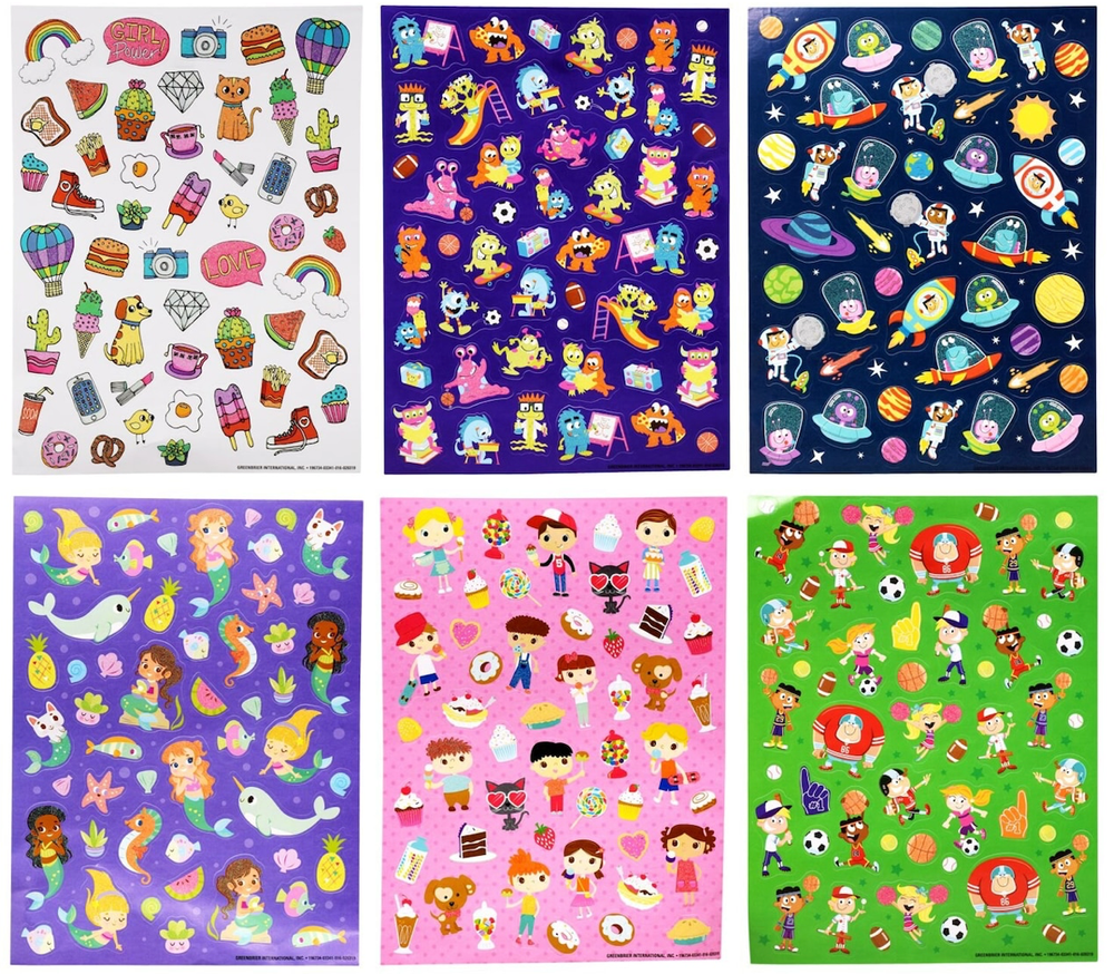 Fun Assortment of Puffy, Scrapbook, Cartoons, Bubble, Pop Up Stickers Packs For Everyone! You will receive 18+ Packs of beautiful colorful assortment. I have included a large variety of pictures of the assortment available. The pictures give you an idea of what you will be receiving. Please Note: You will not receive everything pictured. Please contact me with any special requests. This HUGE Variety of fun designs stickers can be used in parties, classroom, school and home, good for reward for students, potty training, adding inside a birthday card, game activities, entertaining toddlers, etc. Perfect Gifts for Kids & all Occasions: Can be given as a gift for kids, girls, boys, toddlers, teens, students, friends, and classmates, they will love it!