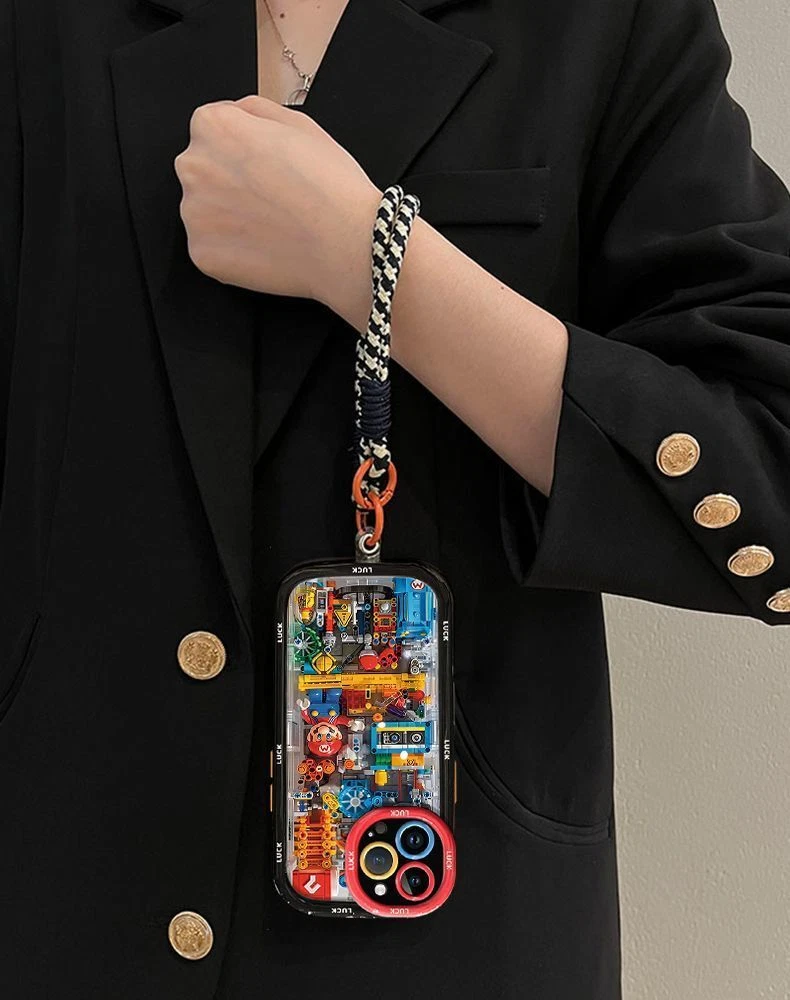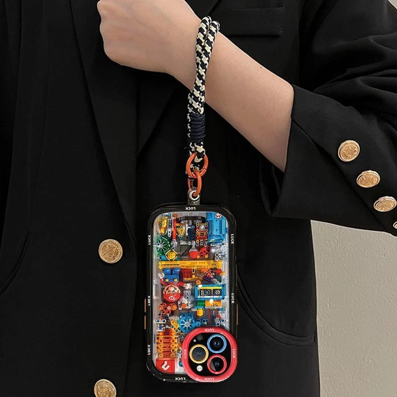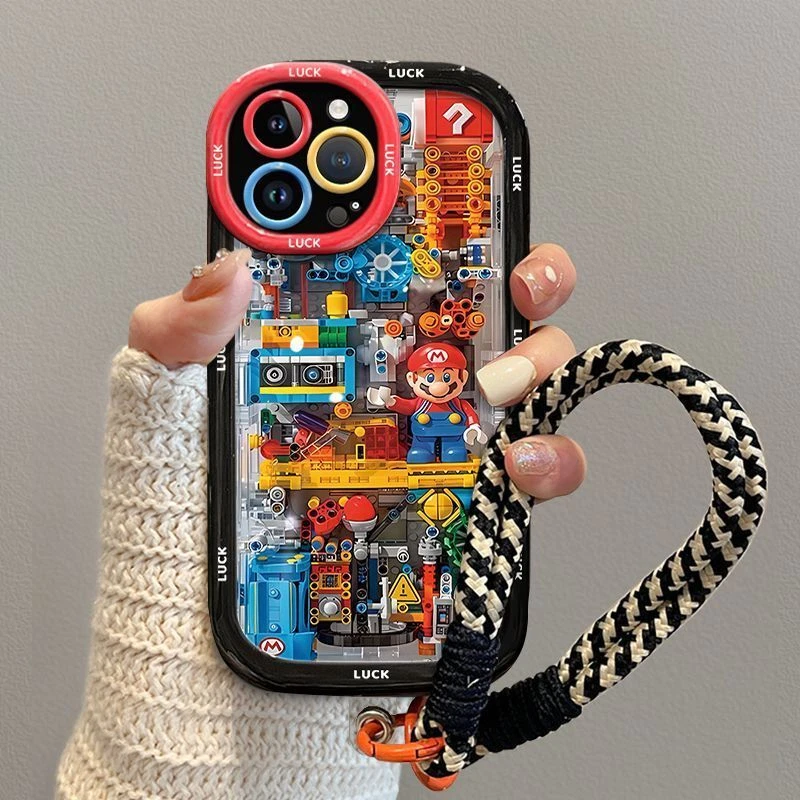 Cartoon building Mario0 Phone Case with lanyard For iPhone 15 14 13 12 Pro Max