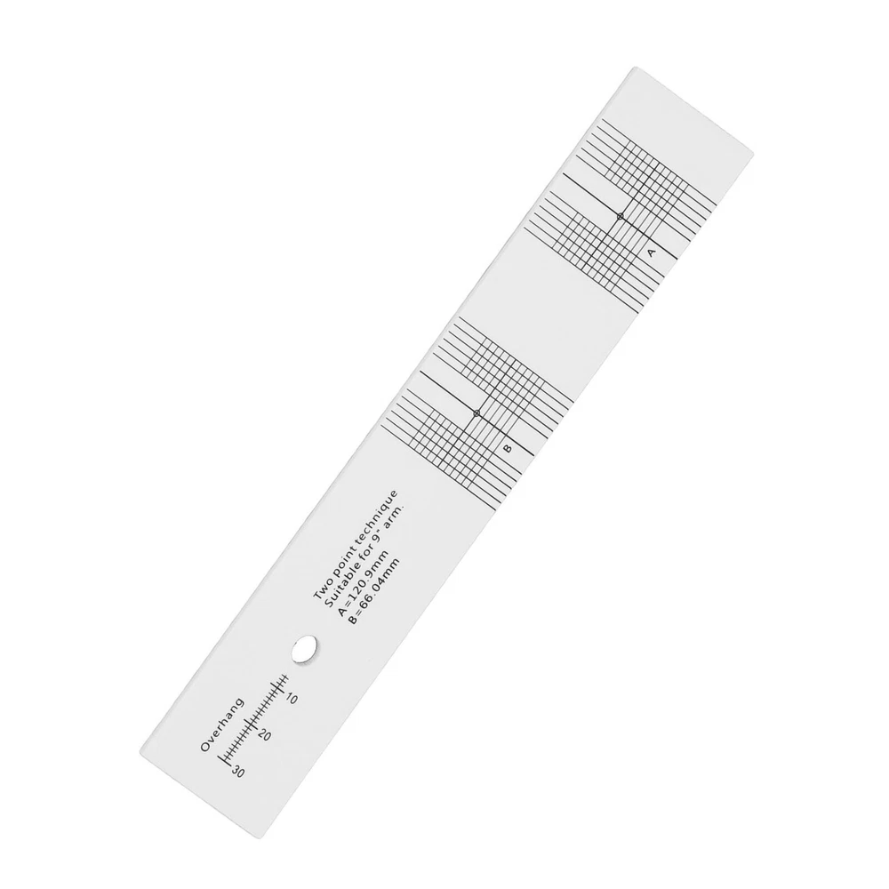Feature: 1. High Accuracy: High contrast cartridge calibration protractor provides better visibility and eliminates tracking errors. 2. Premium Material: Made of high quality acrylic material, firm and strong, sturdy and durable, long service life. 3. Superior Sound Quality: Eliminate tracking error; Adjust the overhang; Avoid overshoot distortion to maintain high quality sound. 4. Easy Operation: Simple to operate, only this protractor tool link to turntable setup guide with instructions printed on the protractor. 5. Perfect Fit: This cartridge alignment protractor is fit for 1/2 in mounted cartridge and can work with an S shaped arm. Specification: Item Type: Cartridge Alignment Protractor Tool Material: Acrylic Color: White Function: Eliminate Tracking Error; Adjust The Trailer Scope of Application: Vinyl Record Player Package List: 1 x Protractor