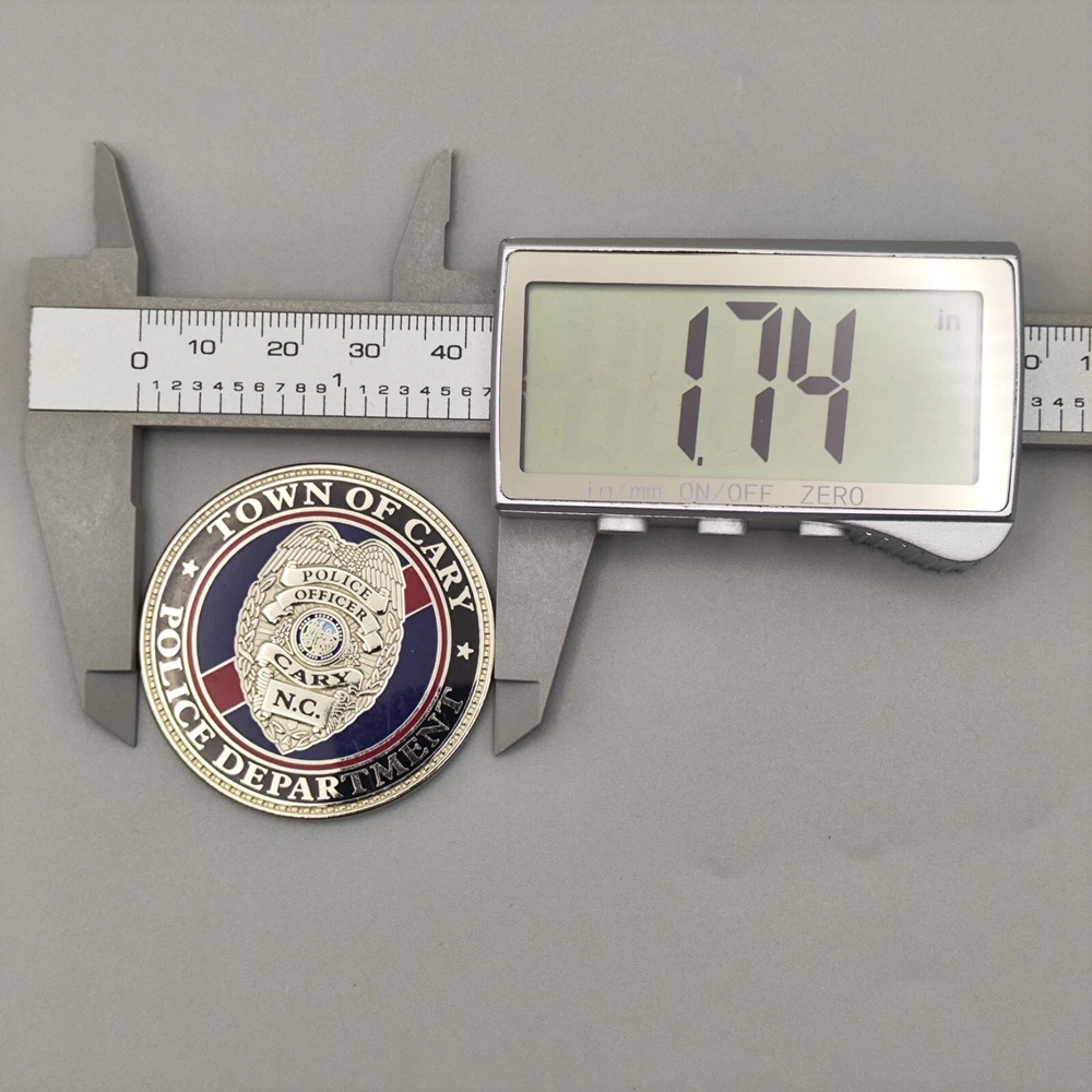 TITLE-- Cary North Carolina Police Officer Challenge Coin SIZE-- Measures approx. 1.74 inches Used coins have imperfections, please see pictures SHIPPING -- Ships within 5 days of receiving payment. Your purchase will be carefully packaged and you can always check tracking information on eBay Purchase two and more and get a discount on shipping SERVICES -- If you have any questions, you can contact us at any time, we will reply you as soon as possible to solve your problem If you are not satisfied with your purchase for any reason, please contact us before leaving neutral or negative feedback, we will solve the problem for you properly