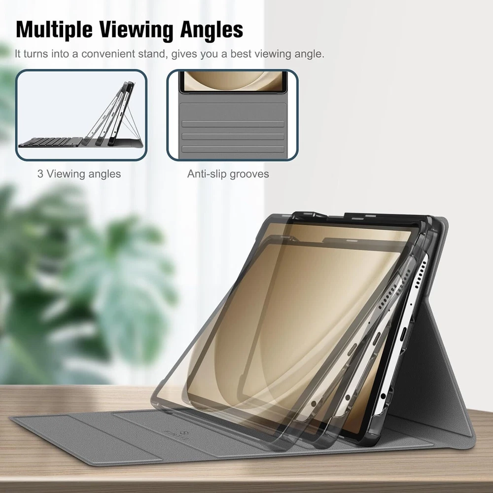 888 Other Apple Accessories Samsung Accessories Microsoft Surface Accessories Nintendo Switch Accessories Onn Accessories New Arrival TV Remote Accessories Passport & Card Holder Bose Accessories Keyboard Fujifilm Case For Samsung Galaxy Tab A9 8.7 Inch 2023 X110 Slim Lightweight Stand Cover 【Perfect Compatibility】This case is compatible with Samsung Galaxy Tab A9 8.7 inch Model (SM-X110/X115/X117) 2023 Release tablet. It will NOT work for any other model device 【Magnetically Removable Keyboard】Bluetooth Low Energy 5.0 Technology ensure that the keyboard can provide up to 230 hours uninterrupted usage. Magnetically detachable Slim 7mm and light weight bluetooth keyboard with 10M range. Smart slim design adds maximum protection with minimal bulk (0.38 in) 【Multiple Viewing Angles】The removable keyboard is used as part of the stand for the tablet. Support 3 viewing angles and built in anti-slip grooves. Move the keyboard forward or backward along the cover of the case, you can adjust the angle of the tablet to your preference 【Dual Protection】Durable PU leather cover and anti-slip rubber-lined interior provide full protection for your tablet. Premium polycarbonate shell locks your tablet in place and absorbs drops and bumps 【Turn Your Tablet into A Laptop】Keyboard can support Android, iOS Systems. Real hard laptop style keyboard with high end ABS material. Not cheap silicone keyboard as other cases in market. A spring mechanism underneath each key ensures a tactile response with every stroke, helping you to type faster and with less error than on a touchscreen Product Contents: Case Only,Without Keyboard 1x Case(Tablet is NOT included!) Case with Keyboard 1 x Case(Tablet is NOT included!) 1 x Bluetooth Keyboard 1 x Micro USB Charing cable 1 x User Manual Payment Delivery details Return Policy Contact us Feedback Payment Only PayPal Payments are accepted at this time; however, you may utilize the tools within PayPal to pay via your credit card. We reserve the right to file an unpaid bidder alert if the payment is not received within 7 days after the auction ended. PayPal transactions are free for buyers. Please let us know before you open a case if PayPal charges you extra fees upon purchase. Delivery details Paid items will be shipped within 1-2 business days. For US buyers, we will ship via USPS First Class mail which will take 2-5 business days for delivery. For other countries, we will ship via FedEx which will take 3-5 weeks for delivery. Shipping details will be sent to buyer through email on the same day that the item is shipped. Your item will usually arrive within the estimated timeframe. However, please note that there are certain circumstances that we unfortunately do not have control (i.e. weather condition, delay by postal office, etc.). Return Policy Contact us within 30 days of receiving the item. No questions asked - all returns accepted. Refund given as an exchange or money back. Return shipping should be paid by the buyer and $3 restocking fee might be charged per item returned. Contact us If you have any questions or concerns please feel free to call, message or email us. Our staff is happy to assist you in any way possible. Our office is open Monday-Friday 9am-5pm EST. CA residents: see the California Proposition 65 WARNING WARNING : Cancer and Reproductive Harm - www.P65Warnings.ca.gov Feedback Customer satisfaction is important to us and our feedback rating reflects this satisfaction. We strive to be as close as possible to 100% perfect "Five-Star." If anything did not meet your expectations, please provide us with the opportunity to fix our issues before you leave feedback. If satisfied with the purchase and our service, please take a minute to give us positive feedback and leave us 5 star feedback just as: Item as described Communication Shipping time Shipping and handing charges On Feb 19, 2025 at 20:10:09 PST, seller added the following information: