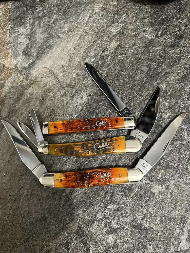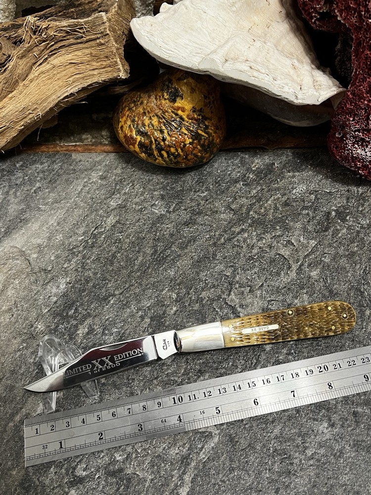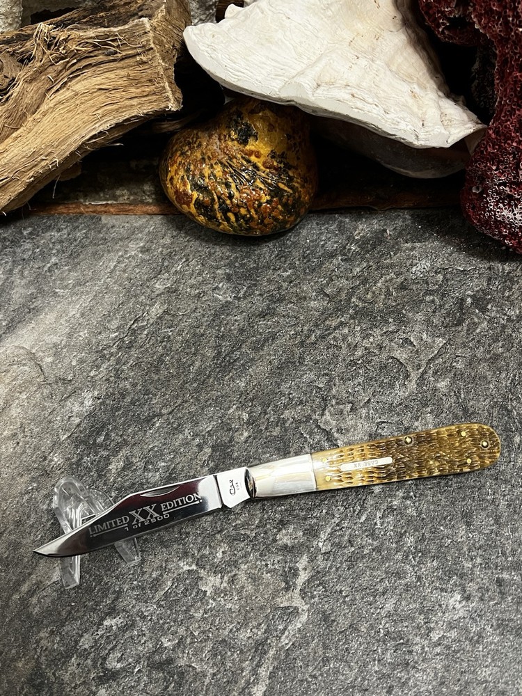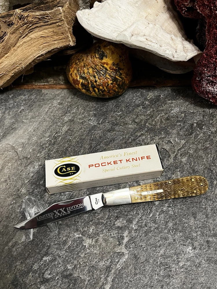Offered here are two Case XX Grandaddy Barlow knives. 1—Case XX Limited Edition 1996 6143ss Butternut Bone Grandaddy Barlow. Never sharpened Tight knife. Box included 2—Case XX Grandaddy Barlow Delrin scales. 1981 production, never sharpened Tight knife.