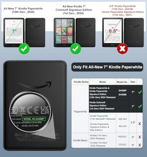 Return Policy Fast Delivery Trusted seller Case for All-new 7"Kindle Paperwhite 12th Generation 2024&Kindle Colorsoft Signature Edition 2024,Lightweight PU Protective Shell Cover with Auto Wake/Sleep for Kindle Paperwhite 2024,Gray Forest Product Description For Kindle Paperwhite 2024: Designed exclusively for 7" All-New Kindle Paperwhite & Kindle Paperwhite Signature Edition (12th Generation - 2024 Release) and Kindle Colorsoft Signature Edition (1st Generation - 2024 Release). Model: SA569P , Not fit other prior generation Kindle devices. Intelligent Power-Saving: Automatically wakes or puts your amazon kindle paperwhite device to sleep when the lid is opened and closed Premium Material: Slim and lightweight hardback with premium PU leather. The no-scratch PC interior adds comfort of touch and an additional layer of protection to your kindle colorsoft e-Reader Thoughtful Design: Magnetic closure keeps front cover sealed. Precise cutout, the kindle can be charged without removing the case. Full-round Protection: A must-have for anyone who wants to protect their e-reader and enjoy a comfortable reading experience; Various Colors available Shipping Returns Payment Shipping Shipping is FREE to all addresses other than APO/PO boxes in the lower 48 states. All our stock ships from US-based warehouses. Shipped via USPS or UPS (depending on location and package weight) Unless stated otherwise, all orders will ship within 24-72 hours of your payment being processed. Check our feedback to see the great reviews of FAST shipping we offer. Returns Seller does not accept returns Payment We currently accept payment via eBay managed payments only. Once payment is cleared, we will dispatch your shipment within 1-3 business days. Please refer to the "Shipping" tab for more information regarding shipping speed to your destination.