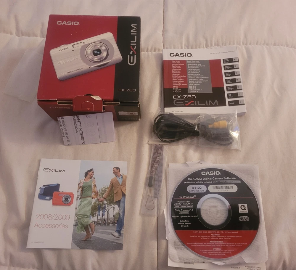 Compact Digital Camera Casio. Tested and working. In the original box with strap, owners manual, battery, charger, and SD card.