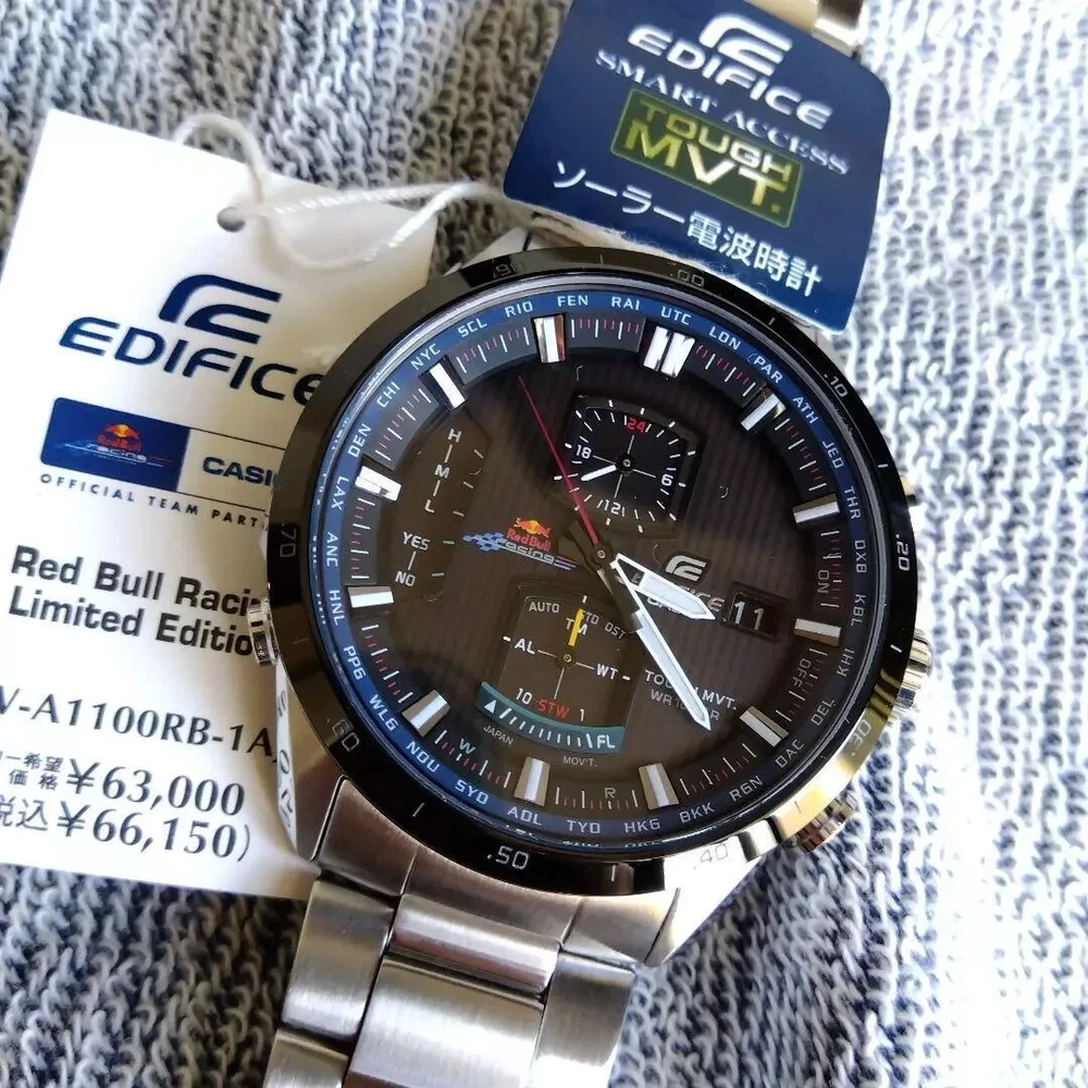 Casio Edifice Red Bull Racing Limited Edition Watch EQW-A1100RB Mint Description Casio “EDIFICE Red Bull Racing Limited Edition” EQW-A1100RB Men's Solar Radio In operation Advanced technology and dynamic sporty design come together in the EDIFIS Red Bull Racing Limited Edition This solar chronograph watch is compatible with 6 radio stations around the world and features Smart Access for easy operation of the stopwatch with lap memory. Movement with four functions, Tough Solar, Multi Band 6, Hybrid Mount Structure, and Automatic Hand Position Correction Smart Access,” a combination of an electronic crown switch for sensuous operation and a multi-motor drive for smooth use of a wide variety of functions Tough Solar (solar recharging system) Multi-band 6 1/20-second stopwatch that receives and automatically corrects the time according to the standard radio waves of six stations around the world (two stations in Japan, China, the United States, the United Kingdom, and Germany) Condition Only tried on at home. It is in near new condition. Size Wrist circumference 21 .5cm. Dial size approx. 42mm No box. Please do not order if you are particular about the product or if you are looking for perfection. We will carefully pack your order to avoid any damage to the item during shipping. ・Thank you for your interest in our products. We try to deal with each item carefully so that our customers can be satisfied and feel at ease. ・Please check the items when you receive them. We inspect each item before shipping. If you find any defective items, please contact us directly by message, not by feedback. We will respond as soon as possible. ・ We going to ship 100% genuine products from Japan for your peace of mind. If you have any questions, please feel free to contact us. ・ We deal in used and new items. If you are particular about the item, or if you are looking for perfection, please refrain from placing an order. Please be aware of this before ordering. ・ Returns and exchanges at the convenience of the customer are strictly prohibited. We also do not accept returns for reasons such as size or different feeling from what you expected. Please understand this before placing an order. Payment Please make a payment within 3 days after you won or purchased. If payment is not received within 3 days, the order will be cancelled. Check Our Shipping Services Standard Shipping ・DHL EXPRESS (2-7 days) ・ Fedex (2-7 days) ・ Japan Post (7-15 days) We will ship with one of these carriers. We plan to ship about 1-2 weeks after payment is completed. Shipping may be delayed if there is a rush of orders. We appreciate your understanding in advance. International Buyers - Please Note: Import duties, taxes, and charges are not included in the item price or shipping cost. These charges are the buyer's responsibility. Please check with your country's customs office to determine what these additional costs will be prior to bidding or buying. 100% Authentic Guarantee Our store has sold more than 2,000 items in Japan since 2016 and we have never had any troubles caused by fakes in the past. This product is 100% authentic. Please take this opportunity to obtain authentic products with confidence and peace of mind. S_AND LIFE STYLE STORE YUI