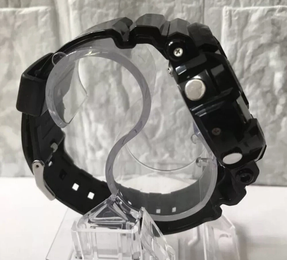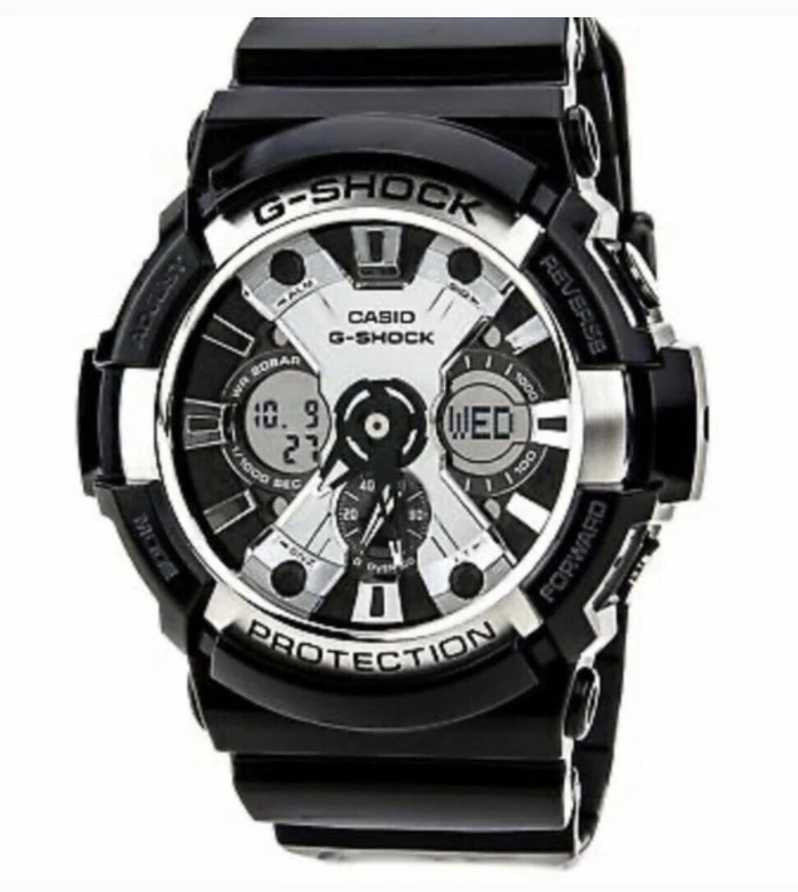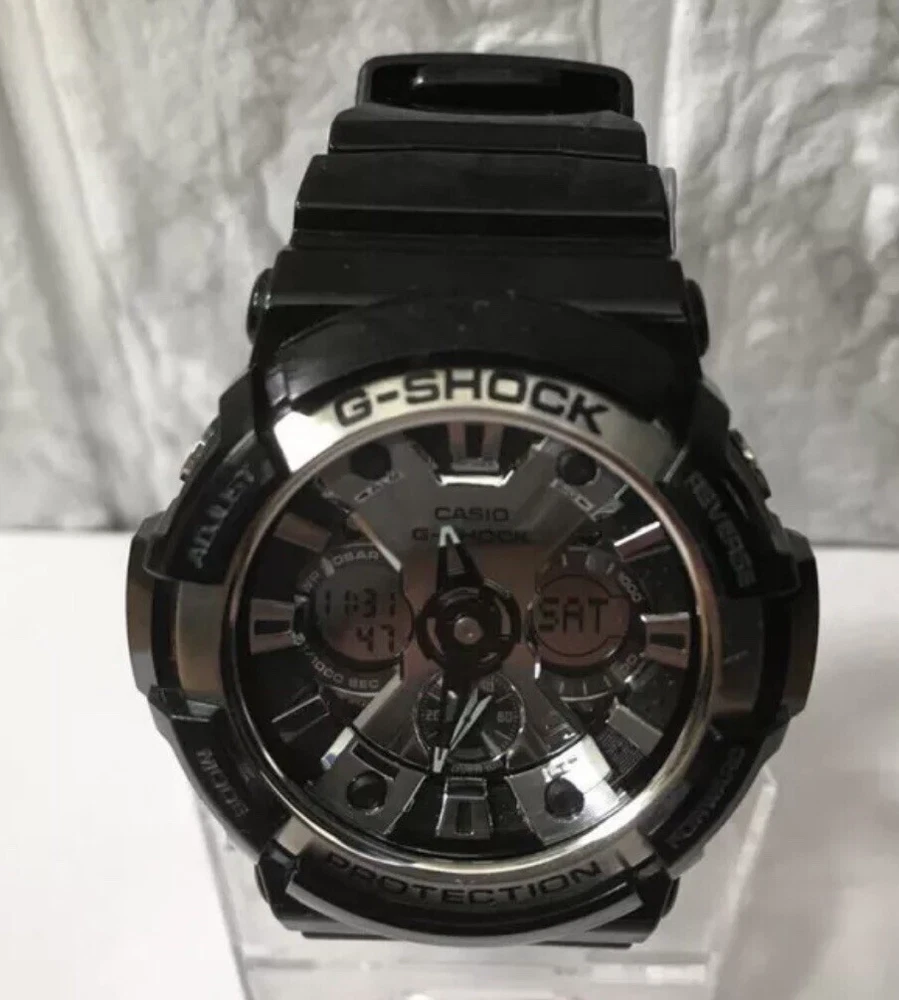 Casio G-Shock GA200BW GLOSSY BLACK & CHROME EXCELLENT Preowned Condition Brand New Battery & Gasket Installed Shock Resistant. 200 Meter Water Resistant. Magnetic Resistant. Auto LED Light with Afterglow. World Time 29 times zones (48 cities + UTC), daylight saving on/off, home city/world time swapping 4 Daily Alarms and 1 Snooze Alarm. Hourly Time Signal. 1/1000 Second Stopwatch Measuring capacity: 99:59'59.999" Measuring modes: Elapsed time, lap time, split time Others: Speed (0-1998 units/hour), Selection distance input (0.0-99.9) Countdown Timer Measuring unit: 1 second Countdown range: 24 hours Countdown start time setting range: 1 minute to 24 hours (1-minute increments and 1-hour increments) Other: Auto-repeat Full auto-calendar (pre-programmed until the year 2099). 12/24 Hour Formats. Battery: CR1220. Approx. battery life: 3 years. Module 5229. Size of case/total weight GA200 55.1 x 52.5 x 16.7mm / 76g. BRAND Casio MODEL GA200BW GENDER Men’s MOVEMENT Japanese Quartz FEATURES Alarm, Chronograph, Stopwatch, Countdown Timer, Day & Date, Light, Multiple Time Zone, Water Resistant WATER RESISTANCE Water Resistant Case Information CASE DIAMETER 52.5 mm CASE MATERIAL Plastic CASE SHAPE Circular CASE COLOR Black DISPLAY TYPE Analog & Digital STRAP COLOR Black Gloss FAST SHIPPING 💨
