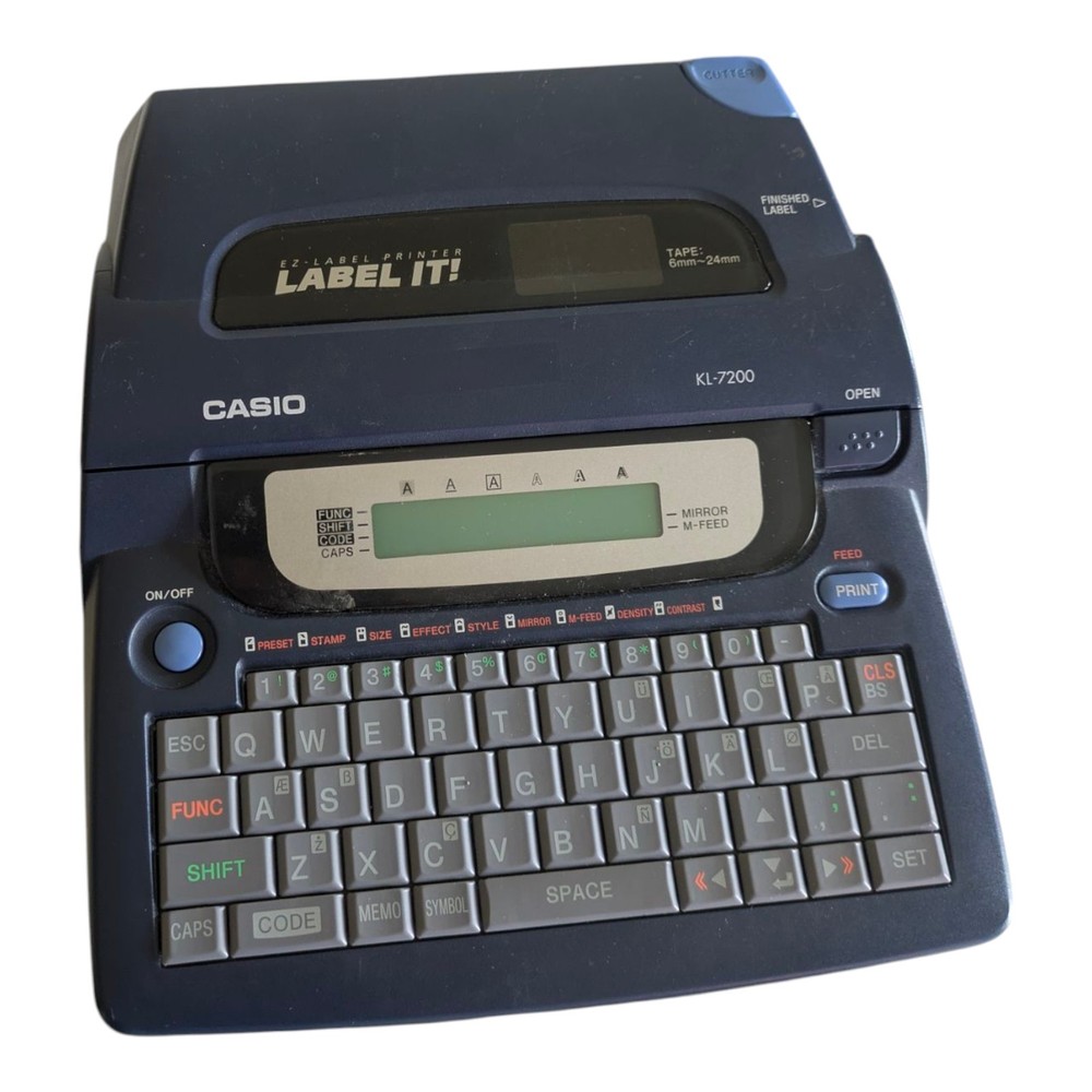 This Casio Ez Label Printer, model KL-7200-L, is a high-quality printing machine that offers excellent results. It is a wireless device that enables you to print labels from, with thermal print technology. This printer is perfect for creating black and white labels for your business or home. The Casio KL series is known for its efficiency and reliability, making this printer a great investment for anyone who needs to print labels on a regular basis. Works just a little bit dusty! Fast Shipping same day or next business day