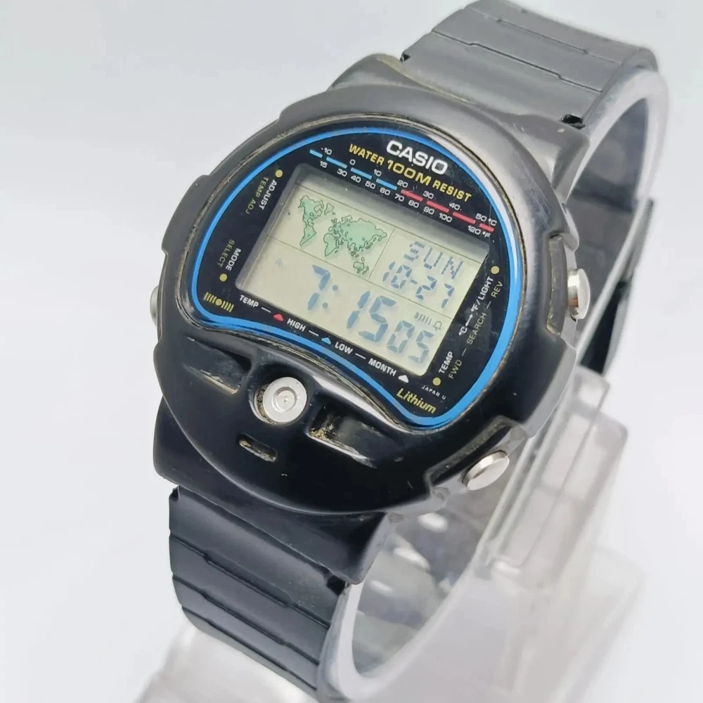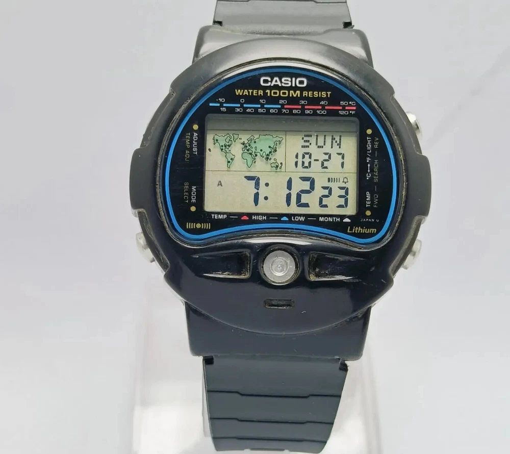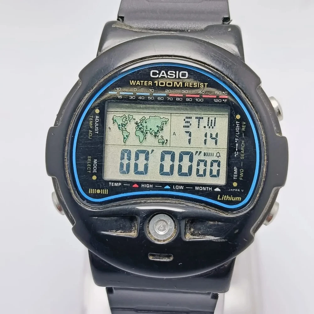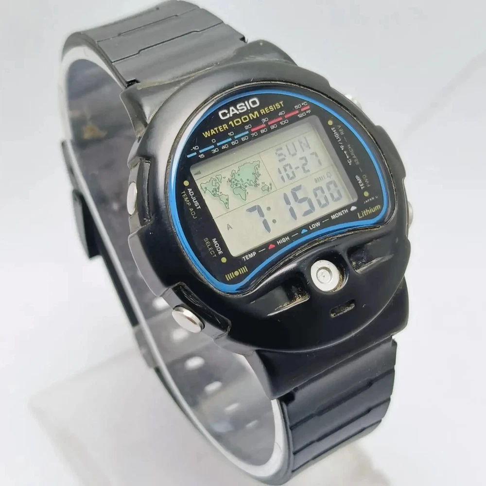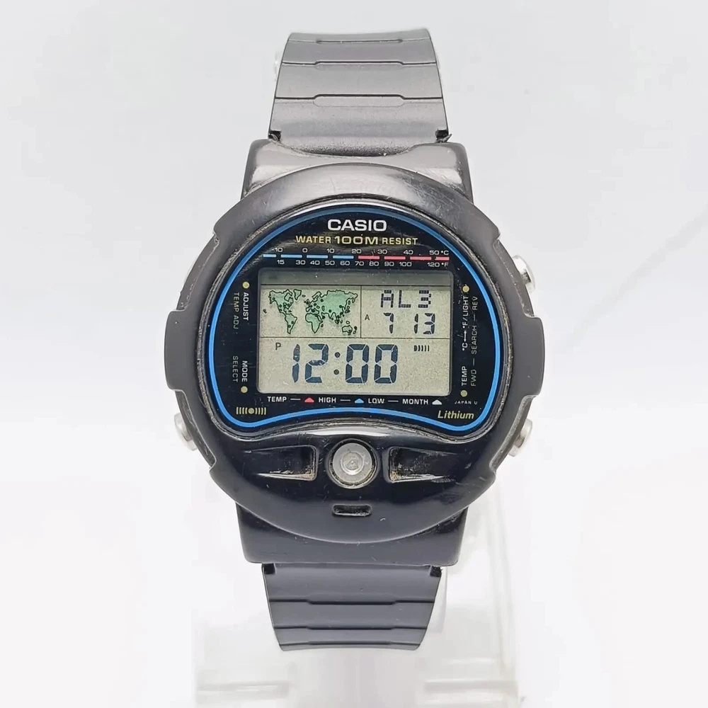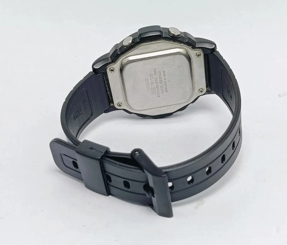 Casio TS-100 Temperature Sensor 815 Alarm digital World Time Vintage Watch C ondition of watch: Watch is in working condition. Please see the picture before buying Defects of watch: There are some Scratches on the Glass and case The lug has been slightly repaired Strap is Aftermarket I’m not sure Temperature sensor is working Measurements of watch: Case width is 42 mm Case thickness is 11 mm lug width is 18 mm We can also accept payments through PayPal. If you have any questions about our products, please contact us anytime. Product code: QSK25KS5 If you have any questions or concerns about your order, for example, goods not received, items are not satisfied, the quantity is not correct, the product is defective, please contact us before you open a dispute or leave negative feedback, we will try to solve for you, thank you for your understanding and help
