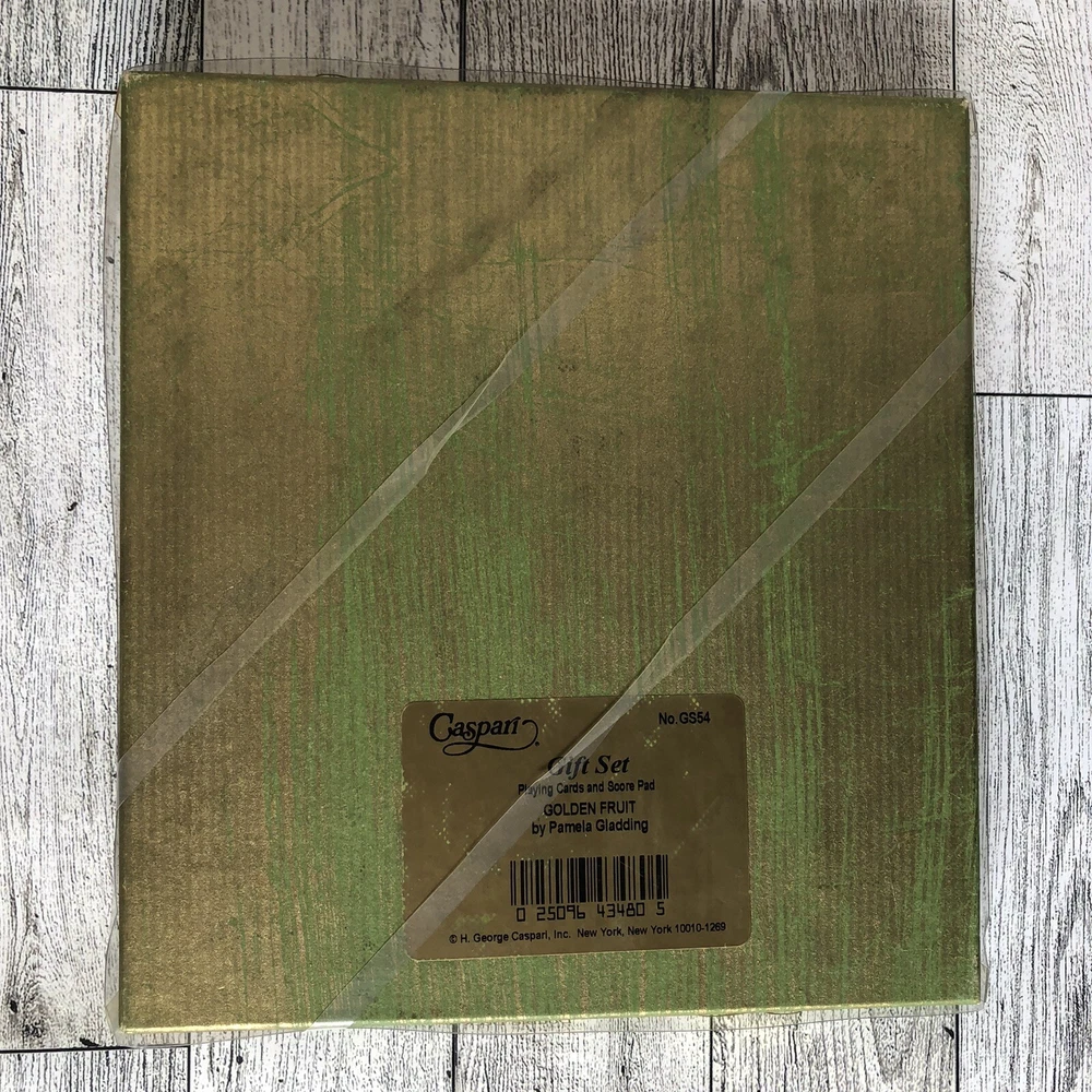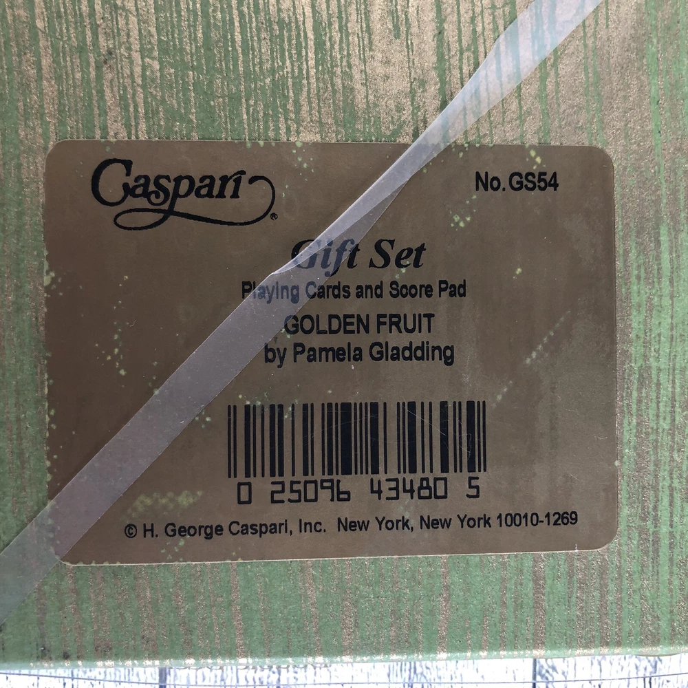 This vintage Caspari playing card deck and score pad set is a must-have for any card game enthusiast. The deck features a beautiful design inspired by The Golden Fruit theme, while the score pad provides a convenient and stylish way to keep track of your progress. Crafted with high-quality materials, this vintage deck is perfect for collectors and players alike. Whether you're looking to add to your collection or just starting out, this Caspari playing card deck and score pad set is sure to impress. Conditions: The item is listed as used because the main box is not sealed. However, the decks of cards are new and sealed and the score pad has never been used. Please look carefully at all pictures and item description before making your purchase. This item is sold as is, item in photos is the exact item you are purchasing. Comes from a smoke-free and pet-free home. Always ship fast! Offers Welcome! Check my other listings for more great deals! Thank you for stopping by and happy shopping!