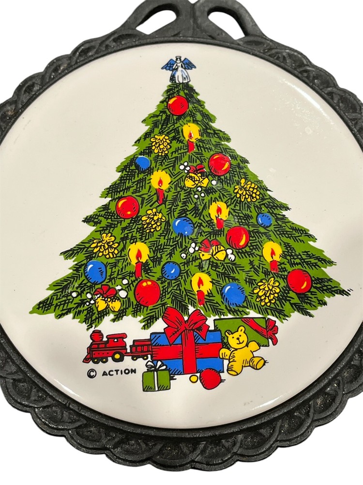 Cast Iron Ceramic Tile Trivet Carlton Christmas Tree 1985 Taiwan w/ Original Box