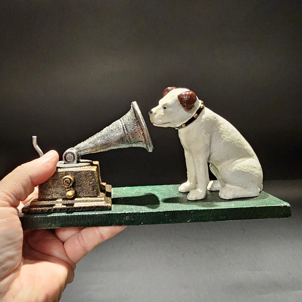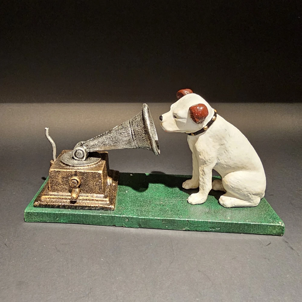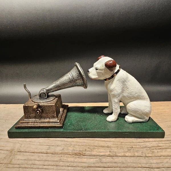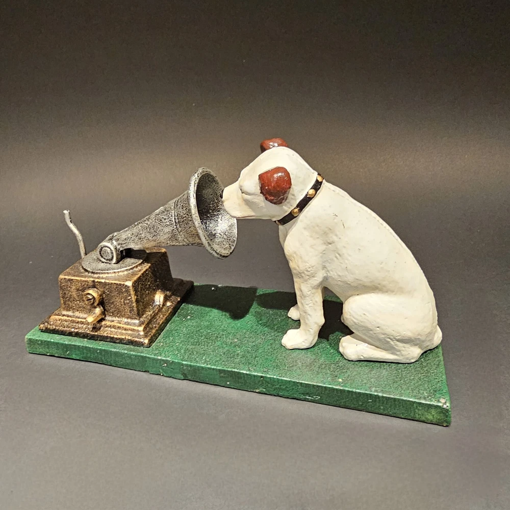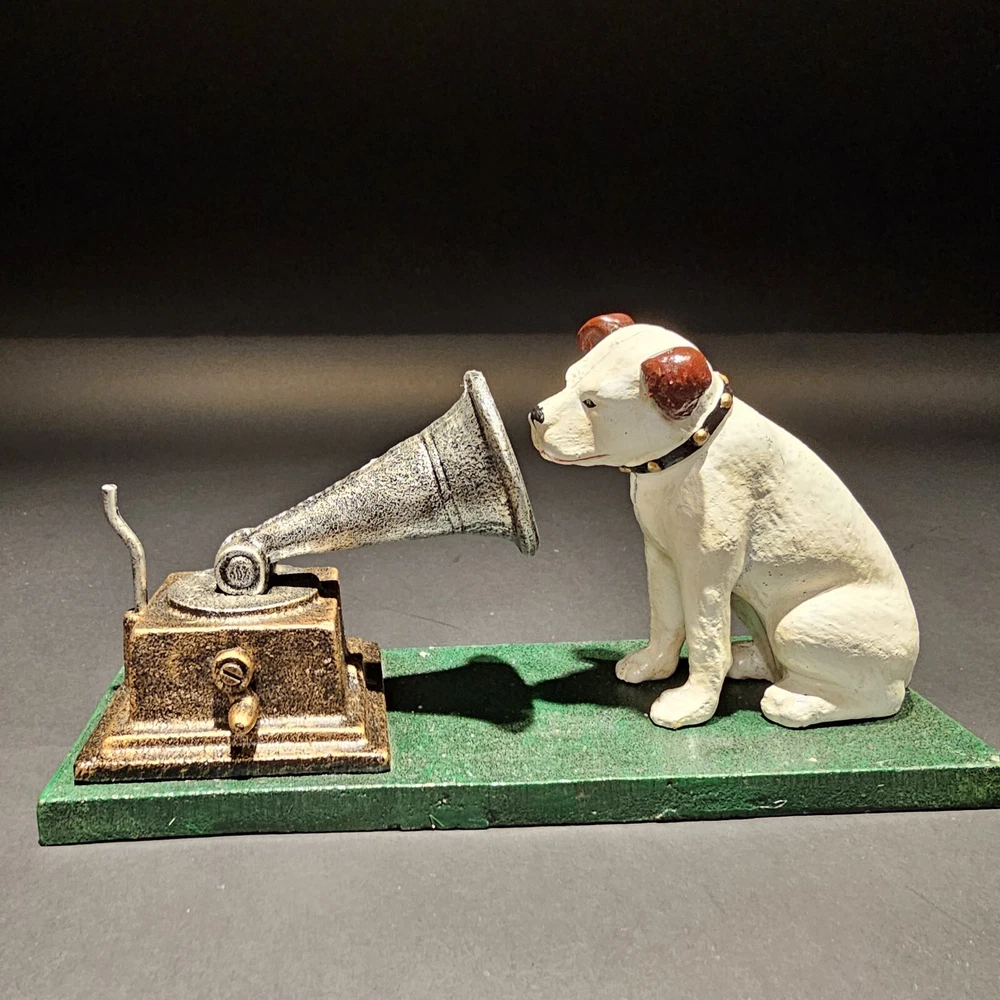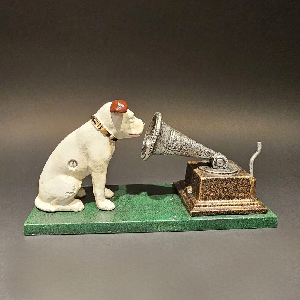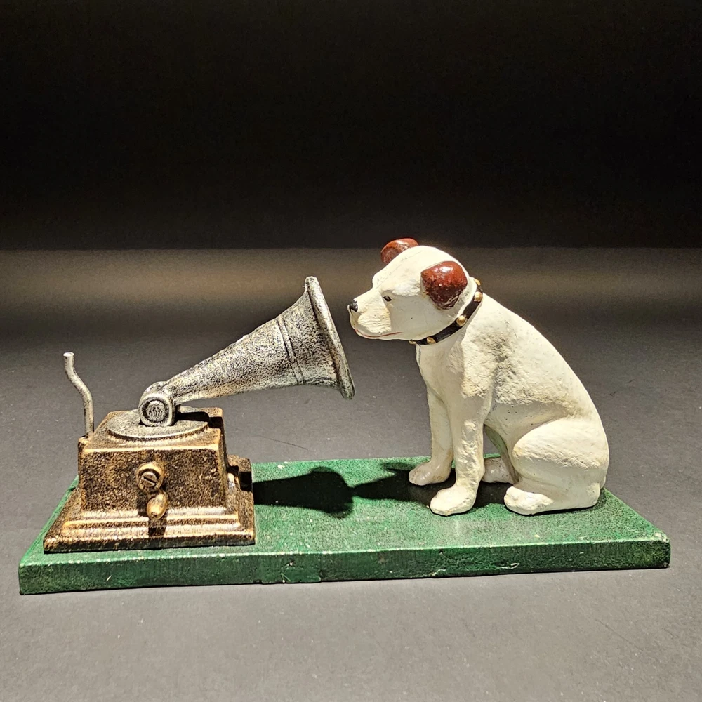 8 3/4" Long x 4 1/2" Tall x 3 1/4" Wide This reproduction cast iron piece is from the famous British record label, HVM ("His Master's Voice"). It shows Dog Nipper with a gramophone and is hand-painted with great detail. At the bottom, it says "ROGERS FOUNDRY, BIRMINGHAM." It's a special piece for any collector's set. All our items come with a 100% customer satisfaction guarantee. About the Items : Each item is inspected before shipping and we do our best not to ship something different in any way then what is shown. ...Mistakes can happen if something is not correct please contact us right away. Shipping All of our items are shipped professionally in NEW locally purchased boxes. We guarantee intact safe arrival. Please contact us if you are concerned or have questions about your order. Return Policy Purchase with confidence we guarantee satisfaction with all of our items, we do not charge restock fees. If the item needs to be returned due to a fault on our part, we will certainly pay for the return shipping. Our description or lack of is not intended to imply or express a warranty of any kind about this merchandise.