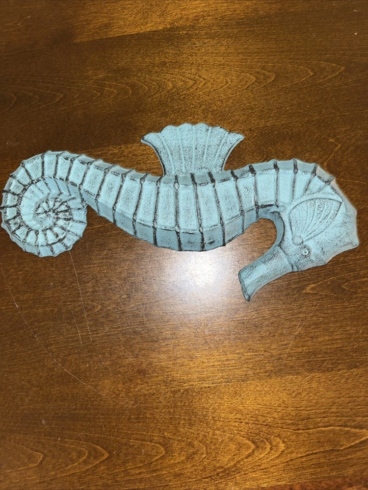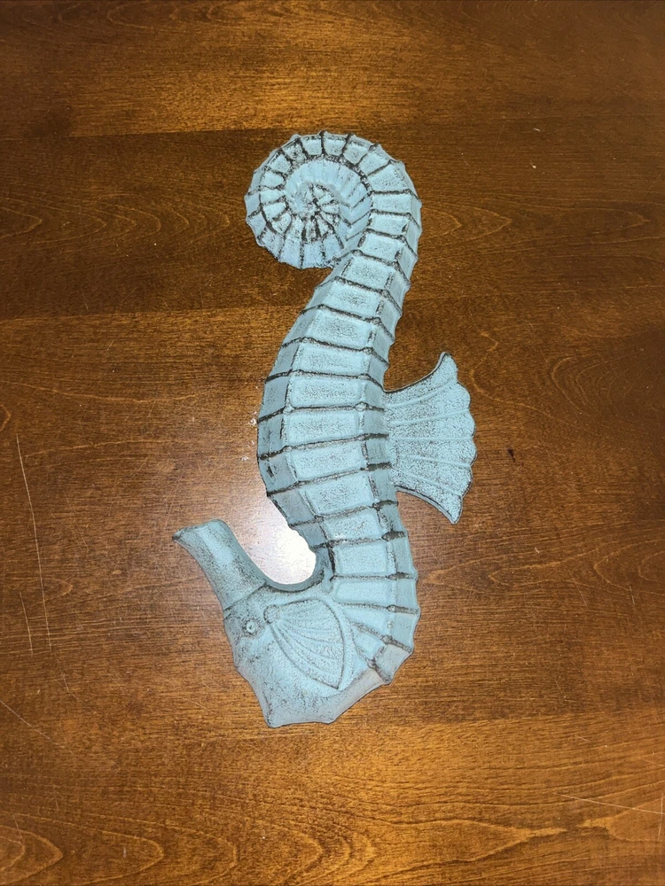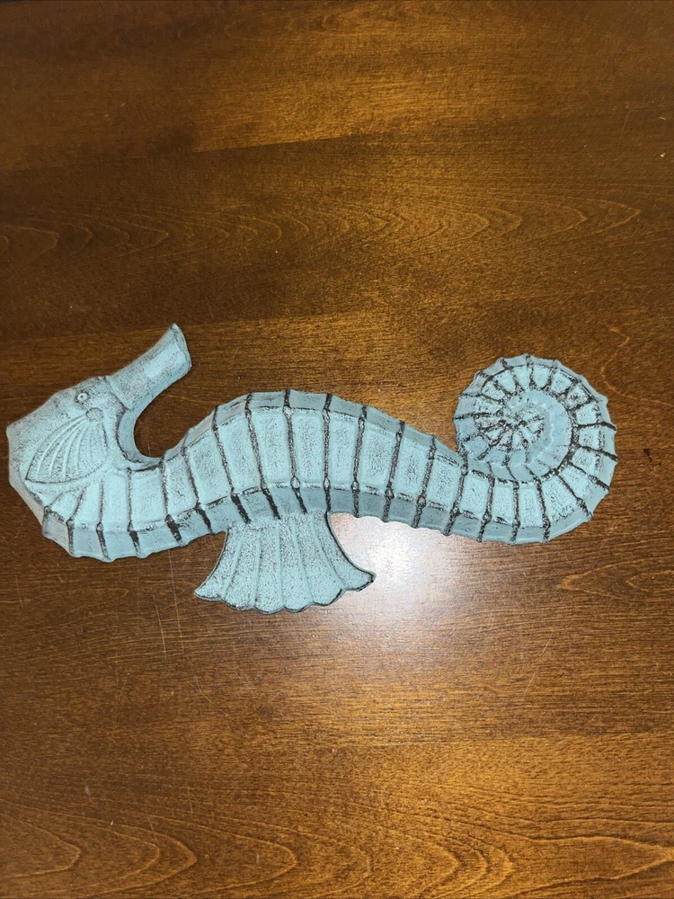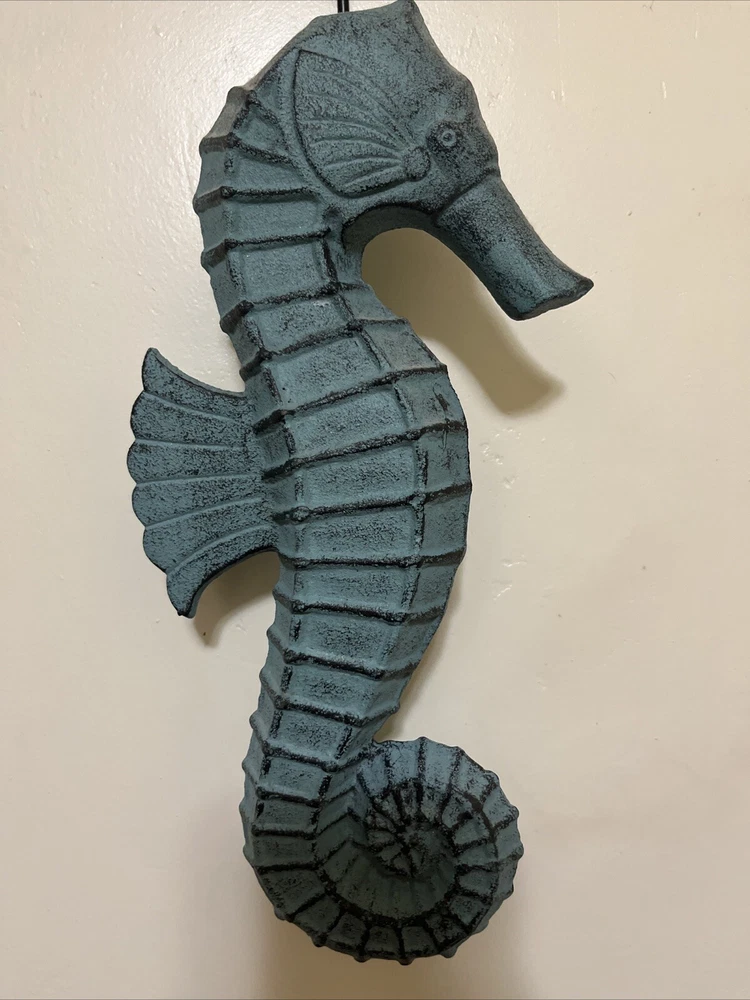 Orientation: Vertical Country/Region of Manufacture: Unknown Care Instructions: Clean with Damp Cloth Color: Sea Foam Green Room: Any Room Department: Adults Type: Decorative Wall Decor Character: Seahorse Character Family: Sea Life Style: Decorative Material: Cast Iron Brand: Unbranded Occasion: Everyday Theme: Nautical-Ocean Life